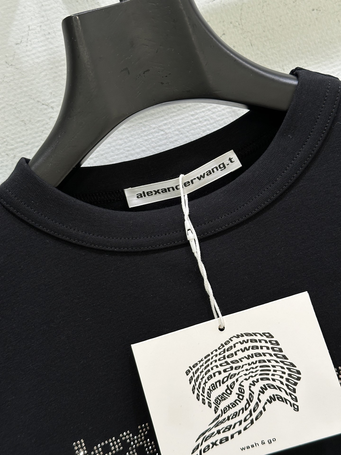 Details: Autumn and winter new arrival, cotton knitted T-shirt with hot-drilled logo, elastic fit, Spot supply