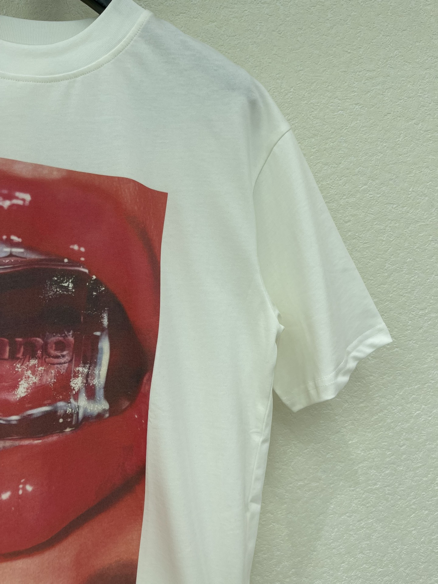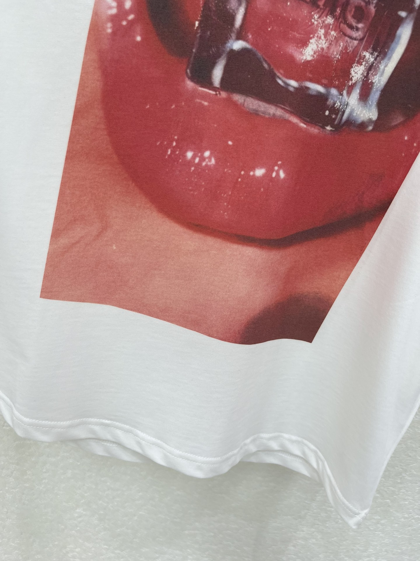 Details: New spring - summer red - lip printed pure - cotton short - sleeved T - shirt, with a sweet - cool style and a loose unisex fit. High - end customization, fine craftsmanship