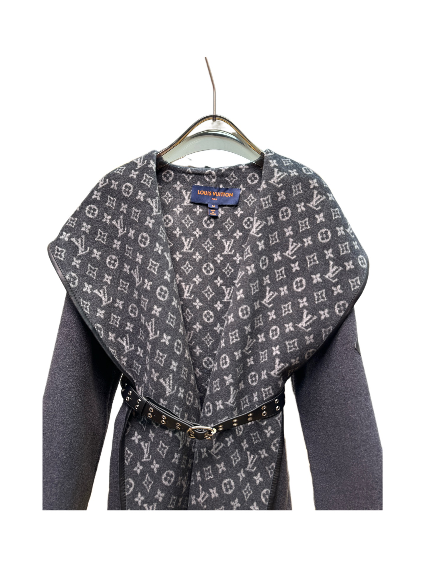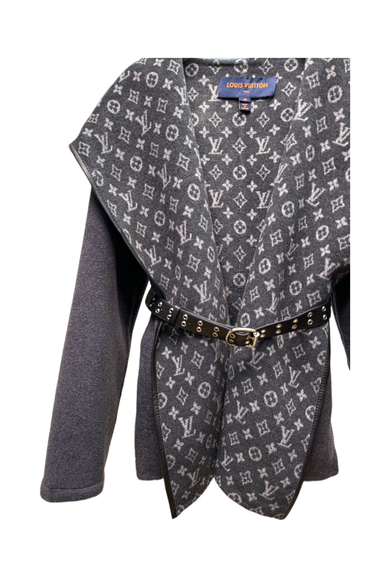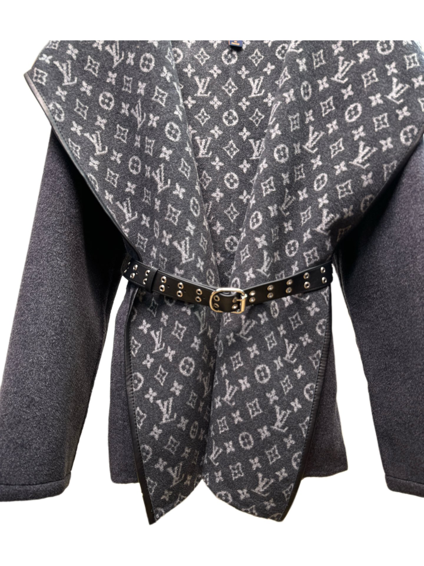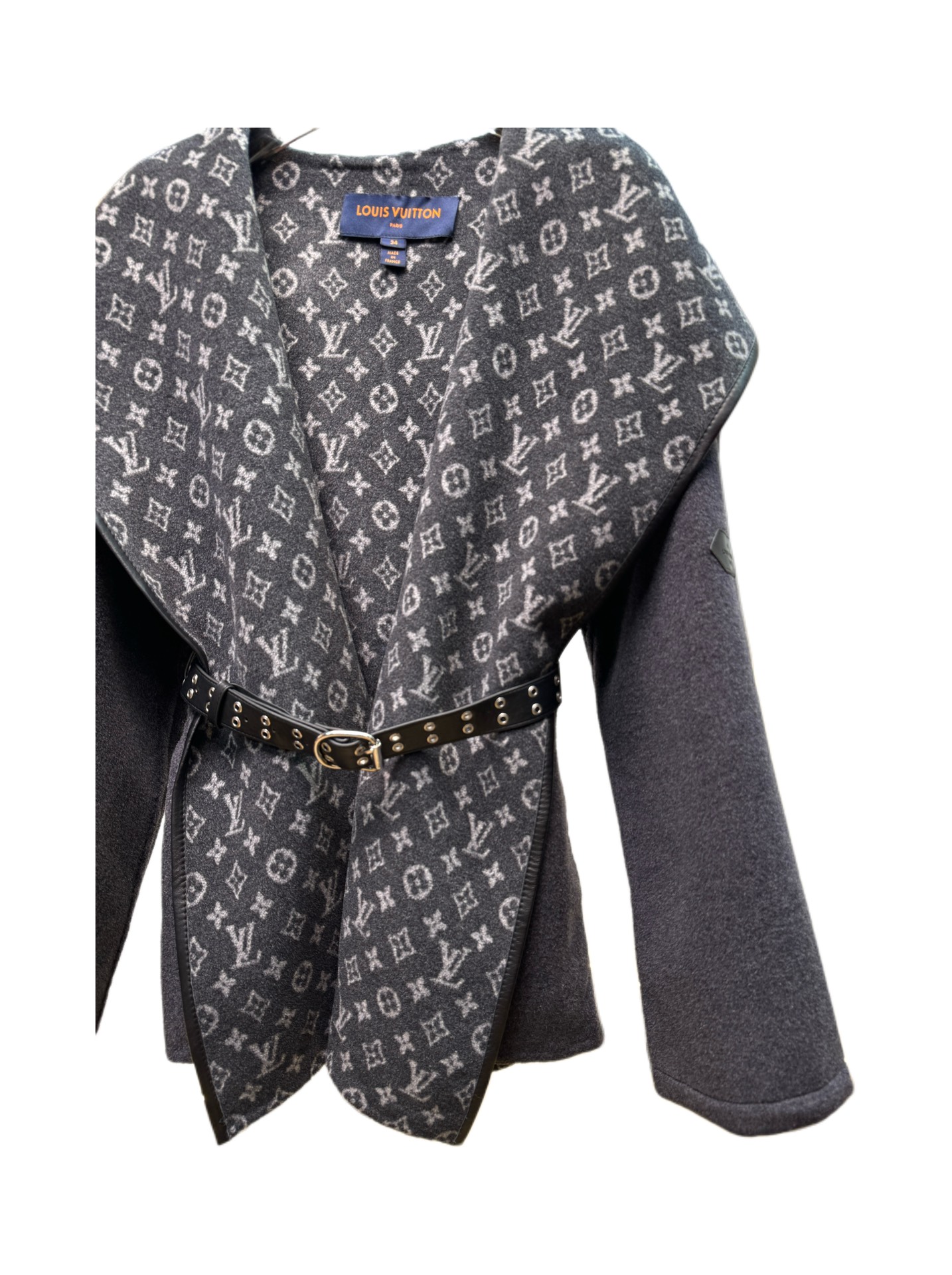 Details: Short dark gray sweater with small flowers, sizes 34 - 40, 99% wool 1% silk, comes with a dust bag.