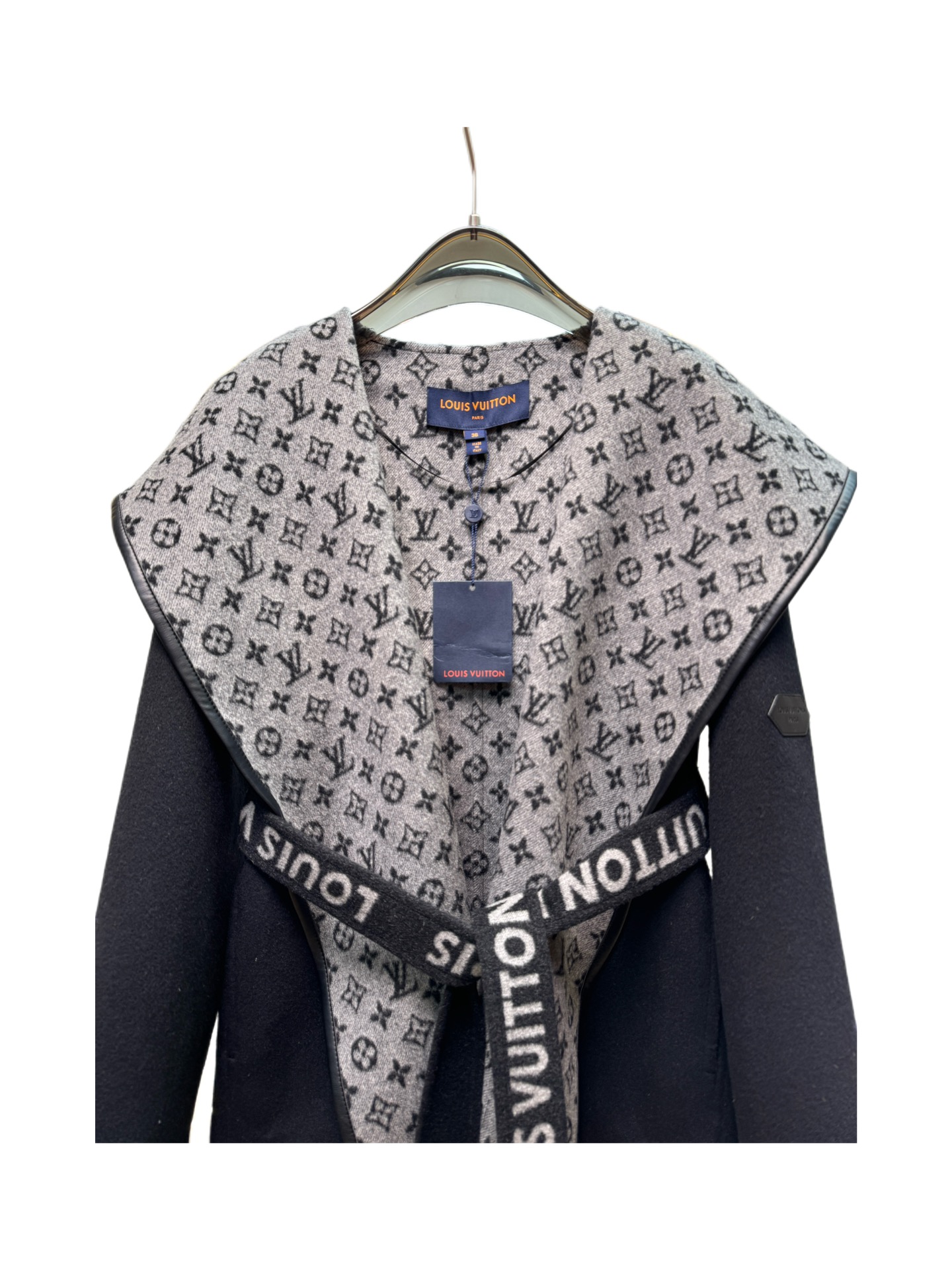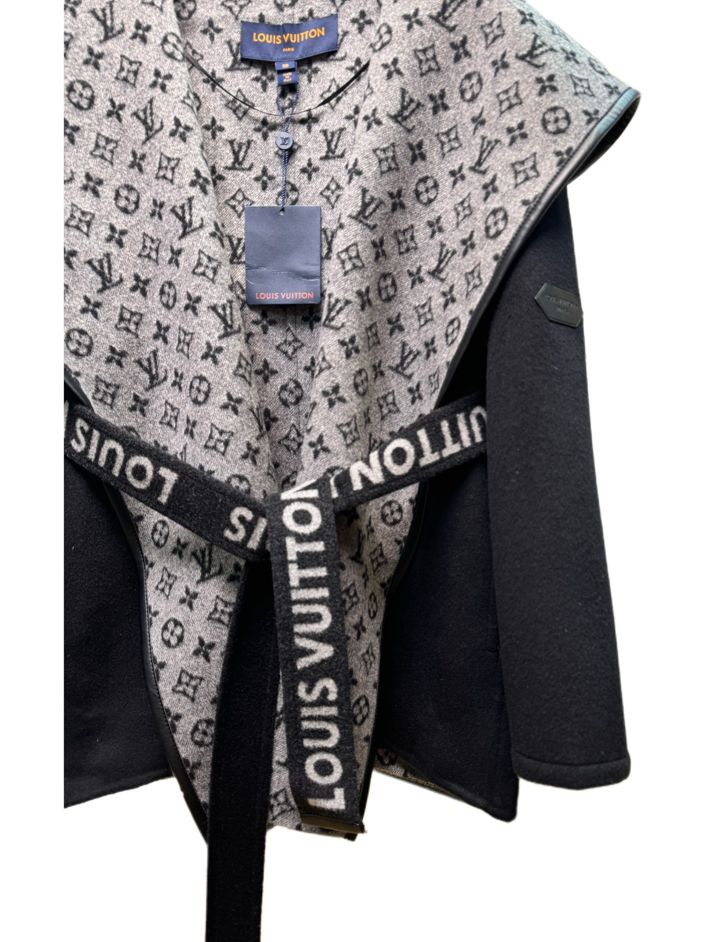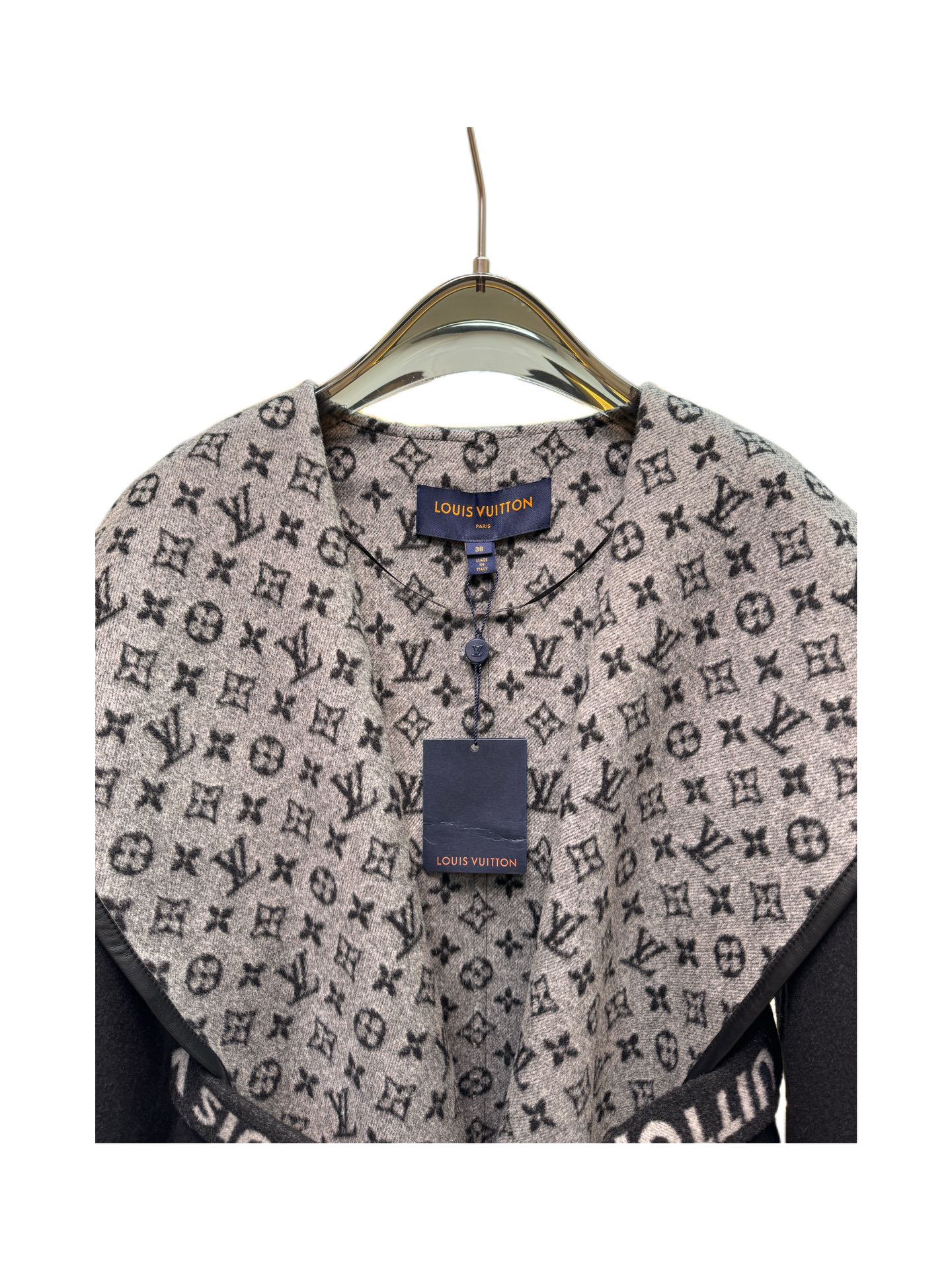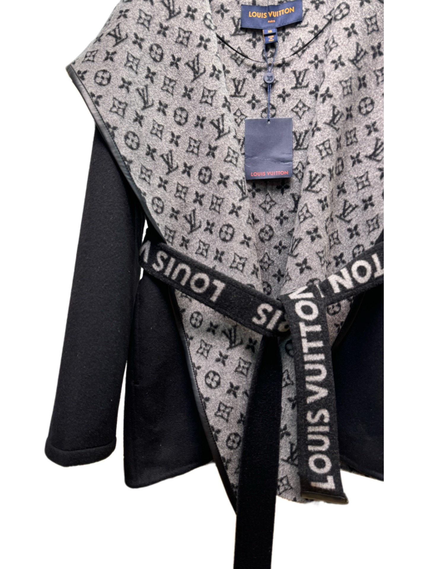 Details: Short black-and-white sweater with small flowers, sizes 34 - 40, 99% wool 1% silk, comes with a dust bag.
