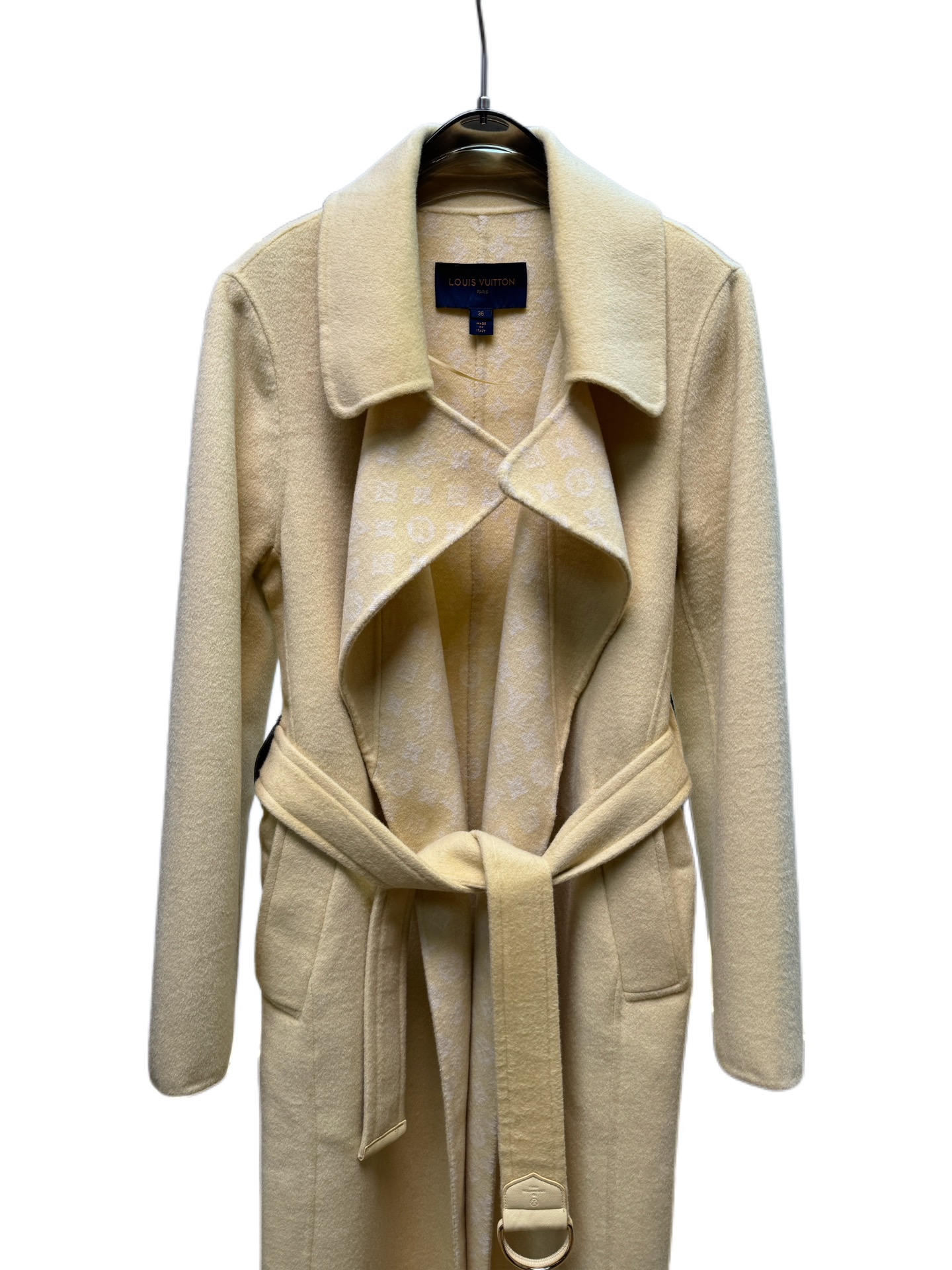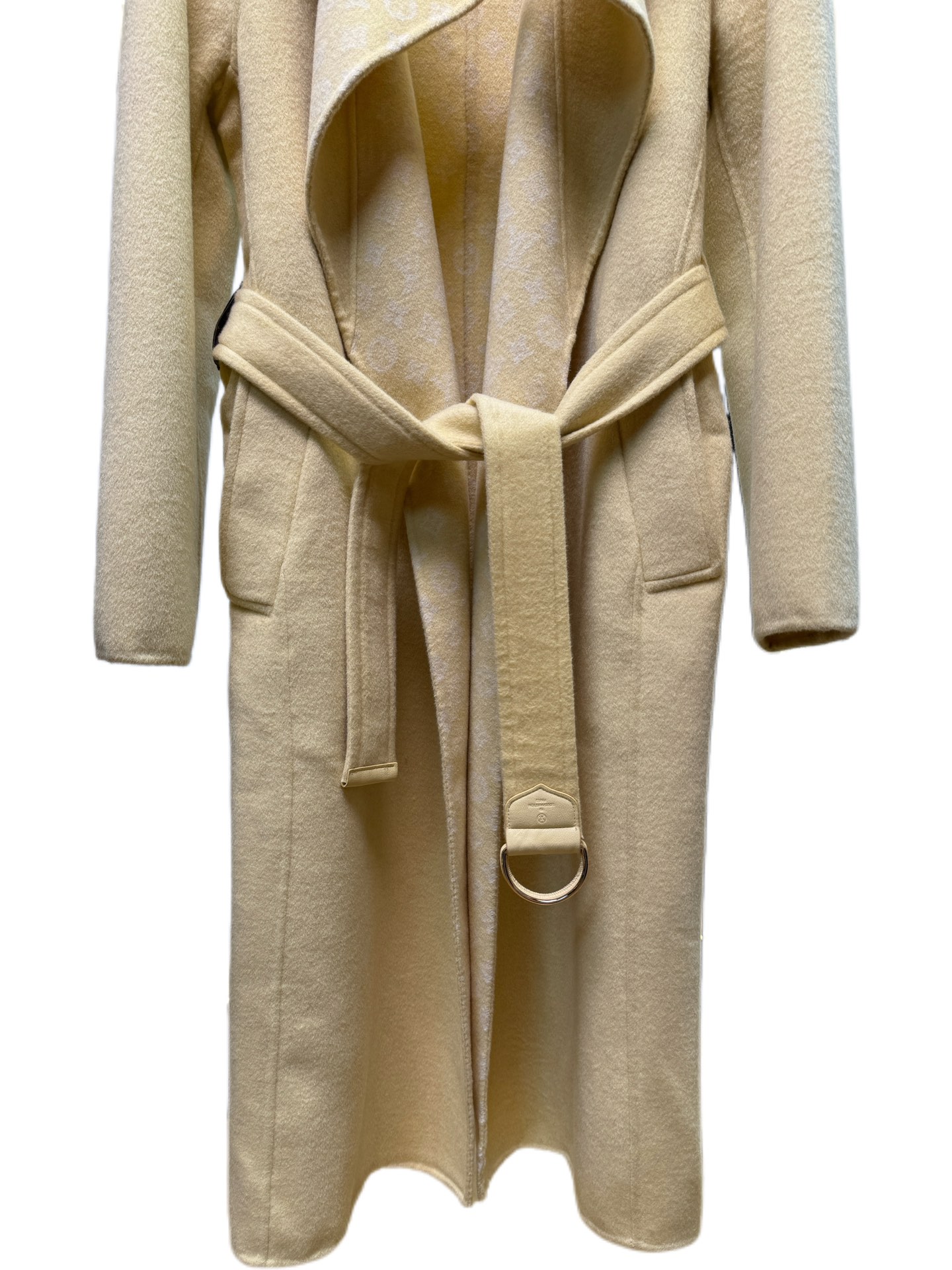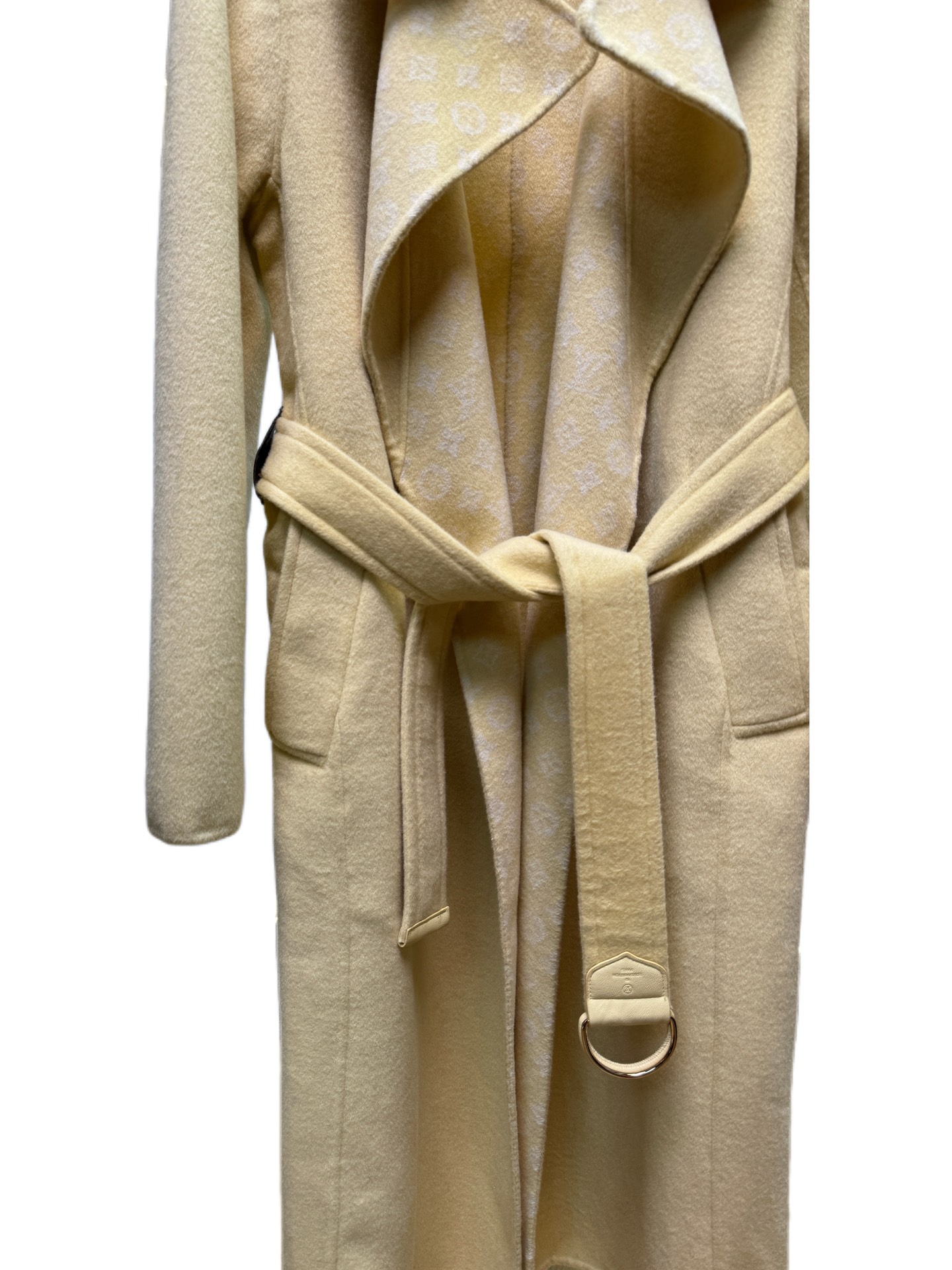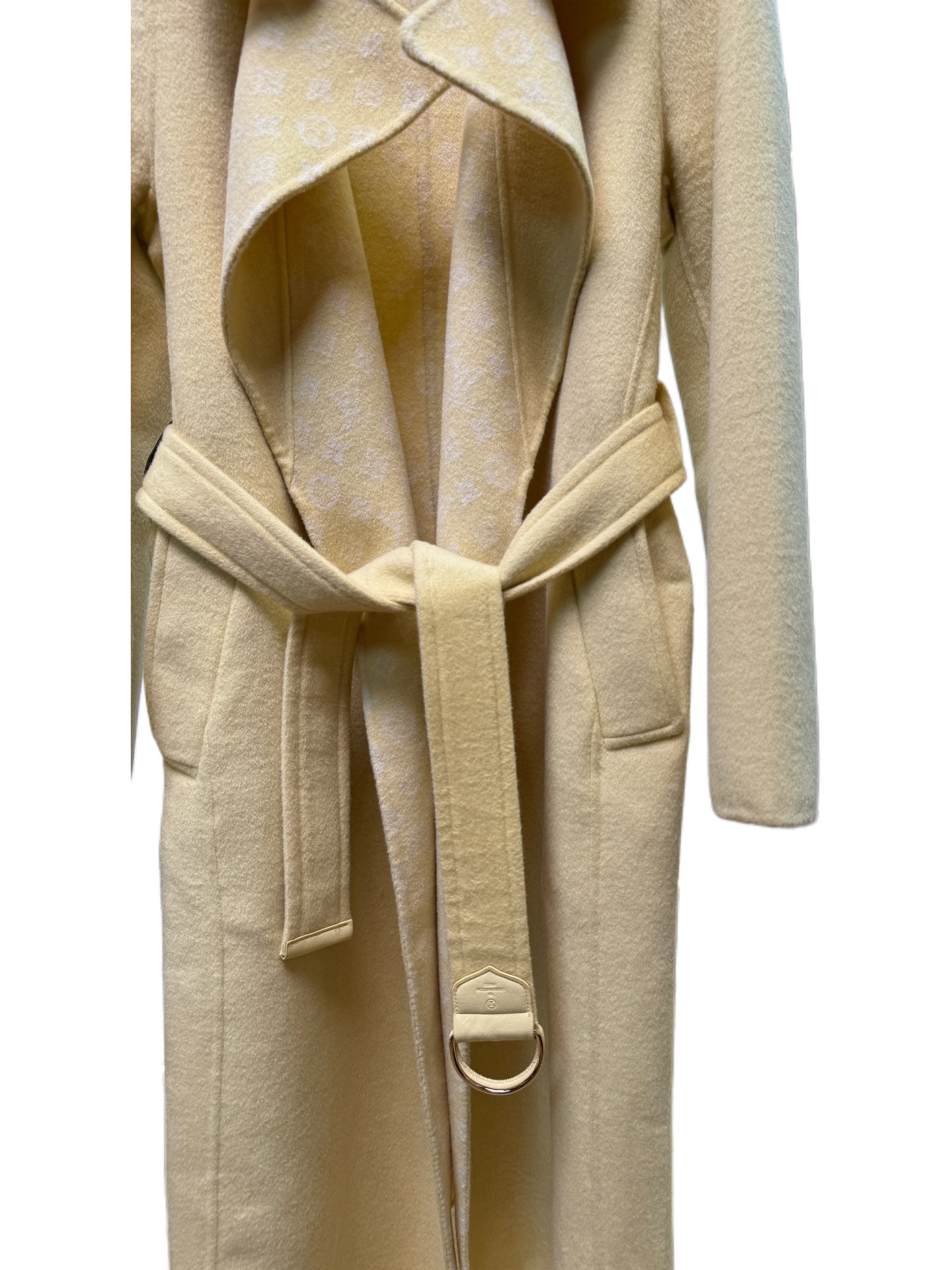 Details: Yellow small floral suit collar long coat, sizes 34-40, 99% wool, 1% silk, premium custom, fine workmanship