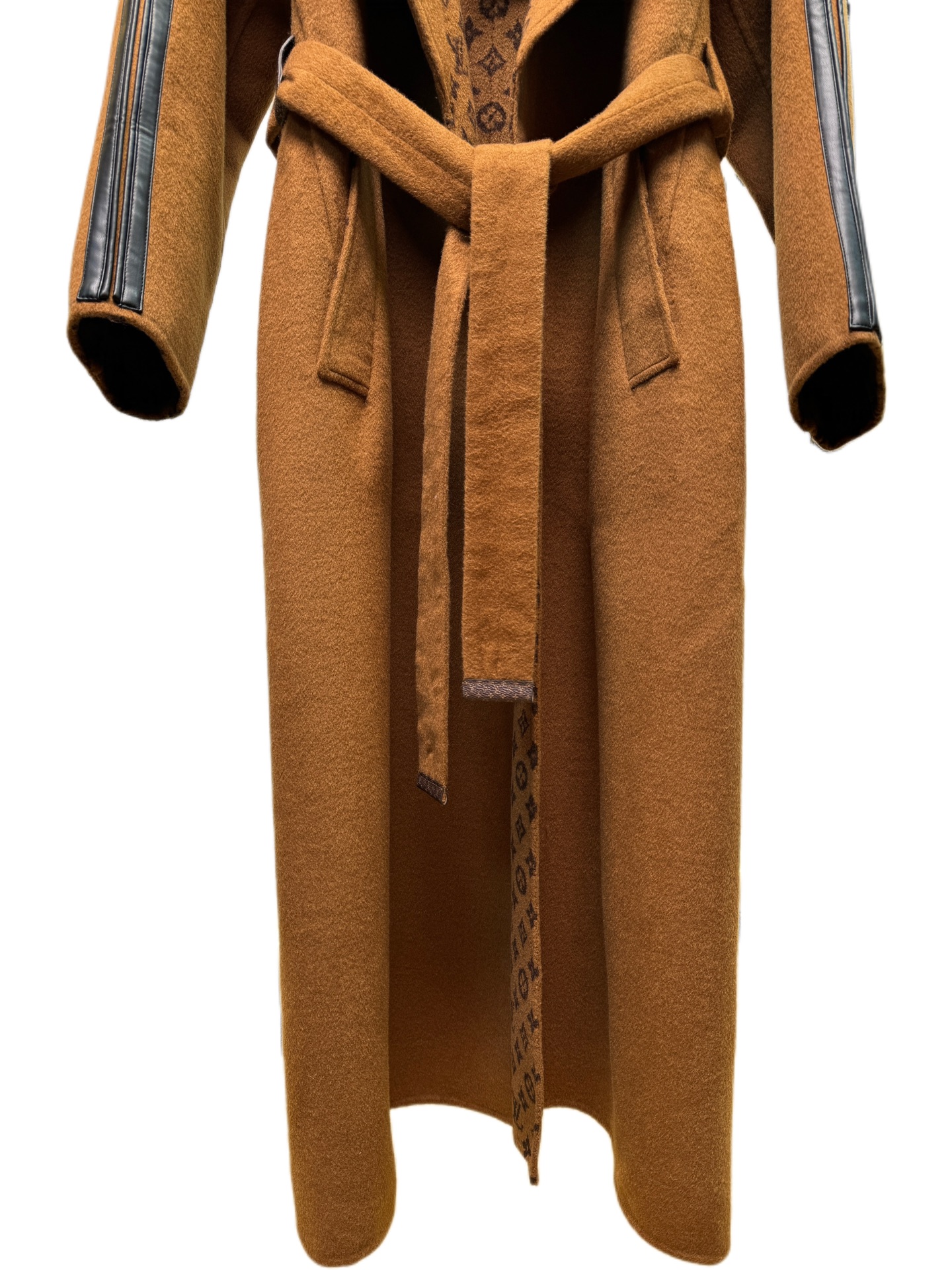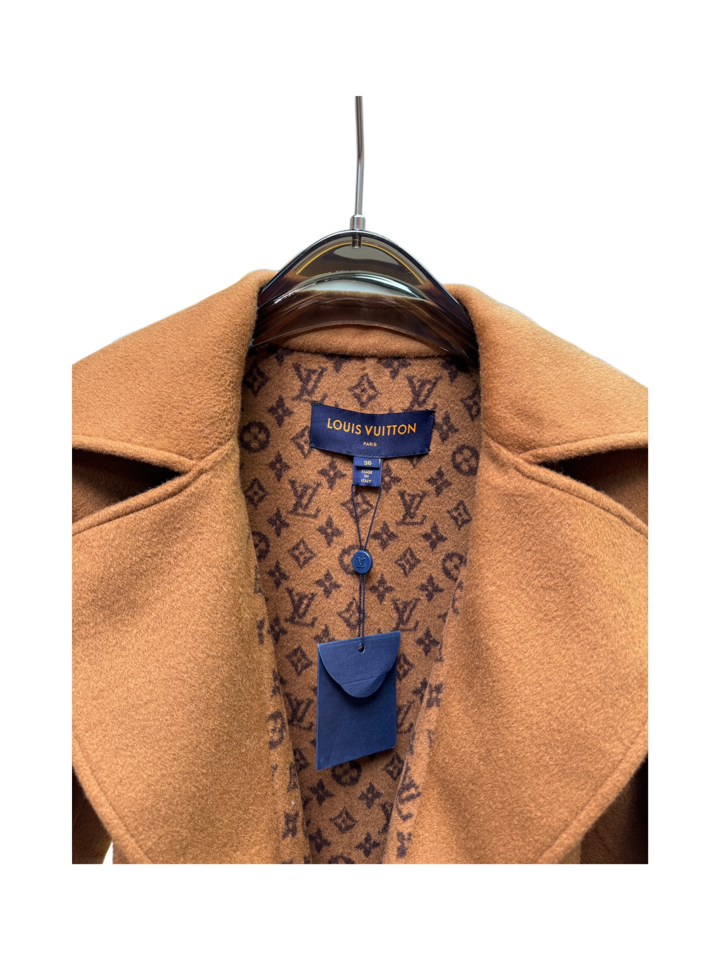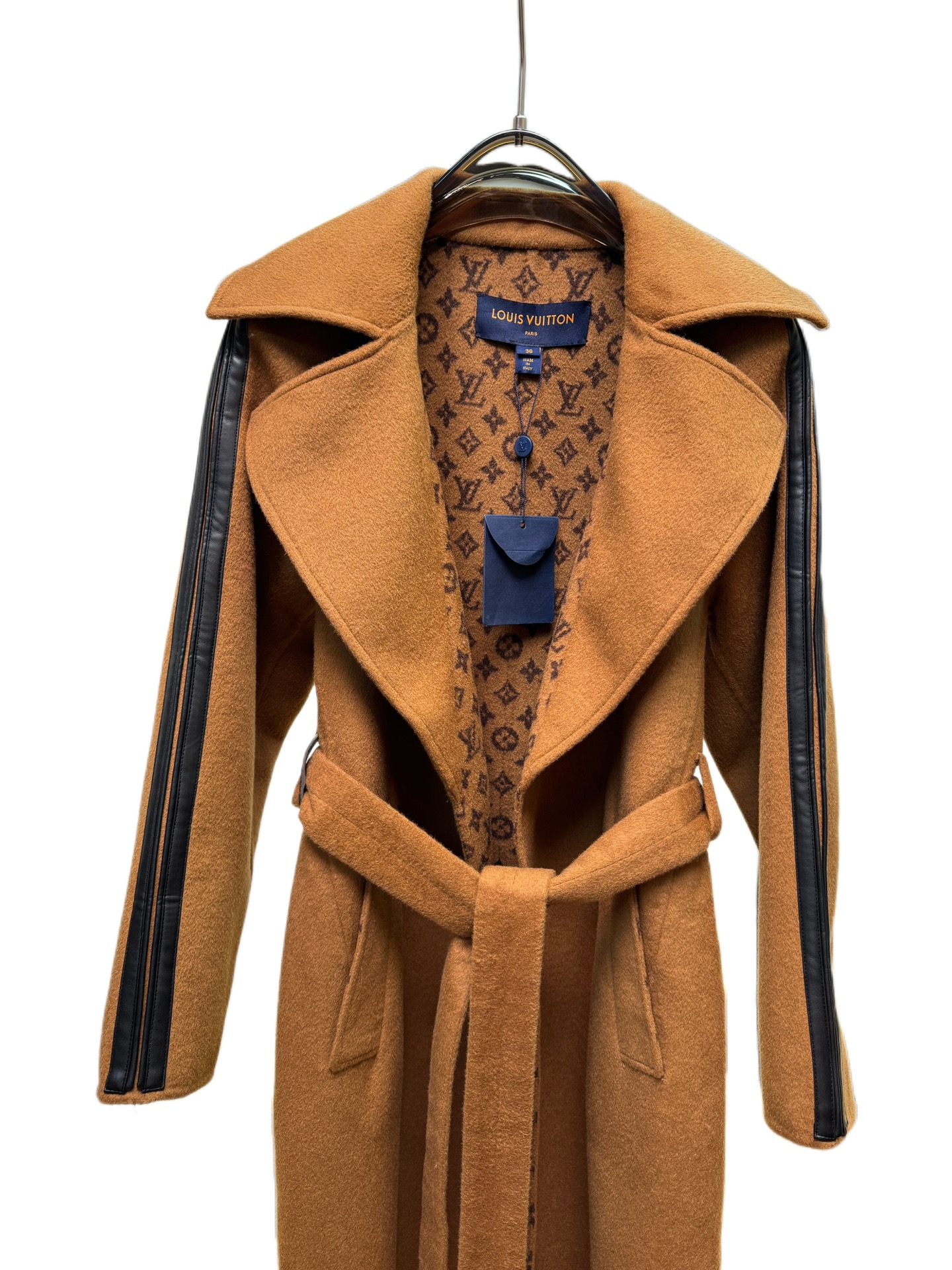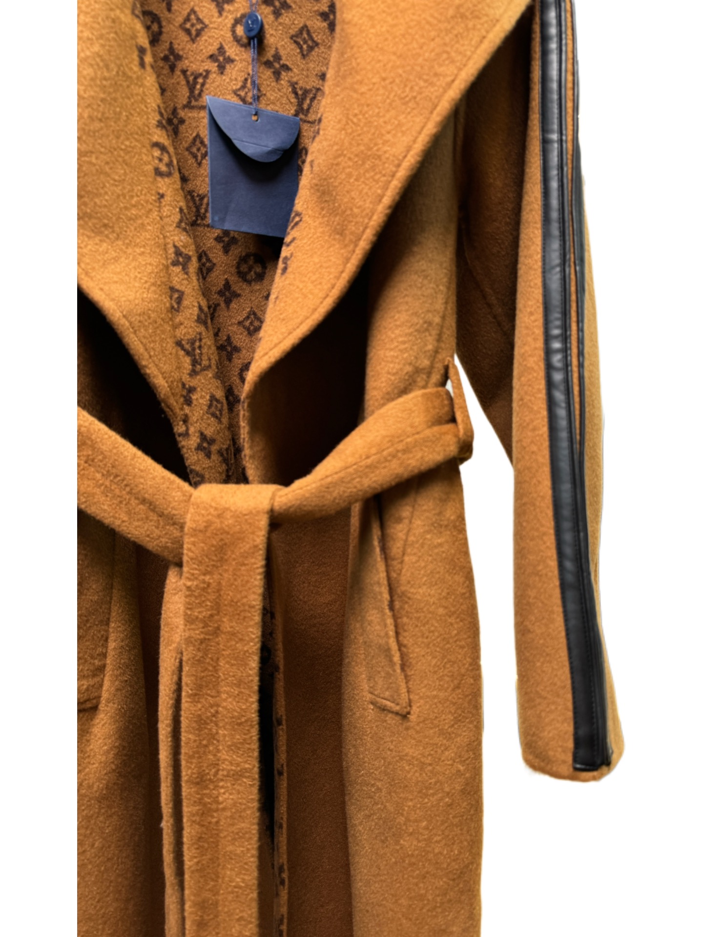 Details: Caramel suit collar long coat, sizes 34-40, 99% wool, 1% silk, premium custom, fine workmanship