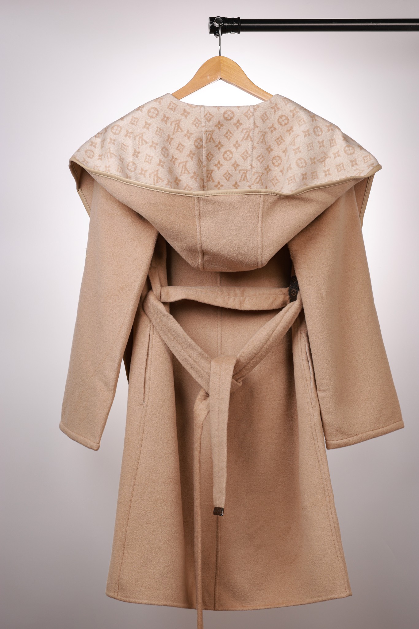 Details: Beige single-sided long coat, sizes 34-40, 99% wool, 1% silk, with dust bag. High customization, delicate workmanship