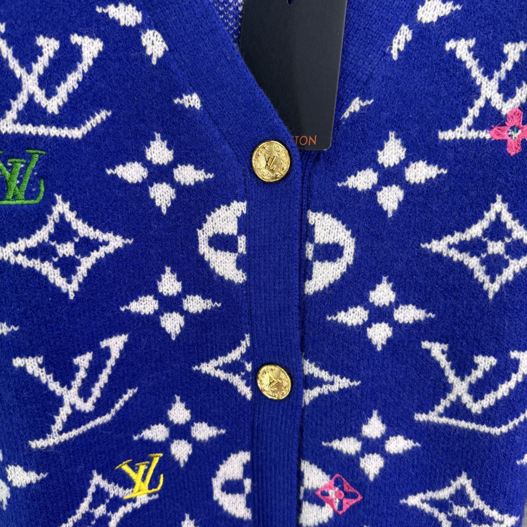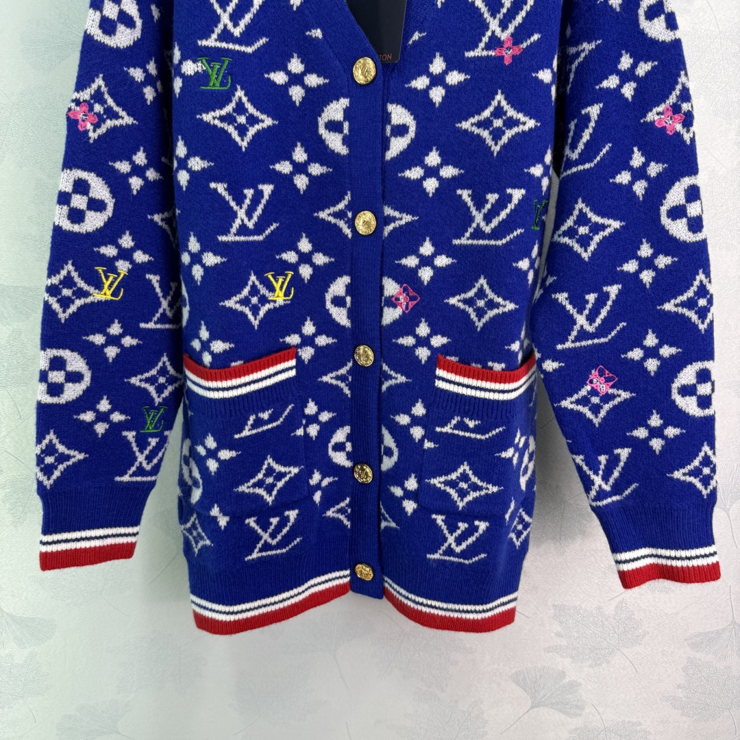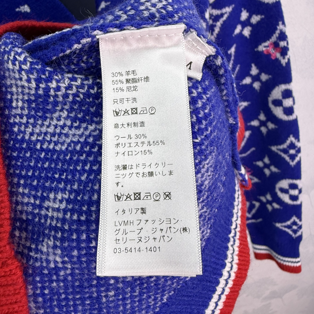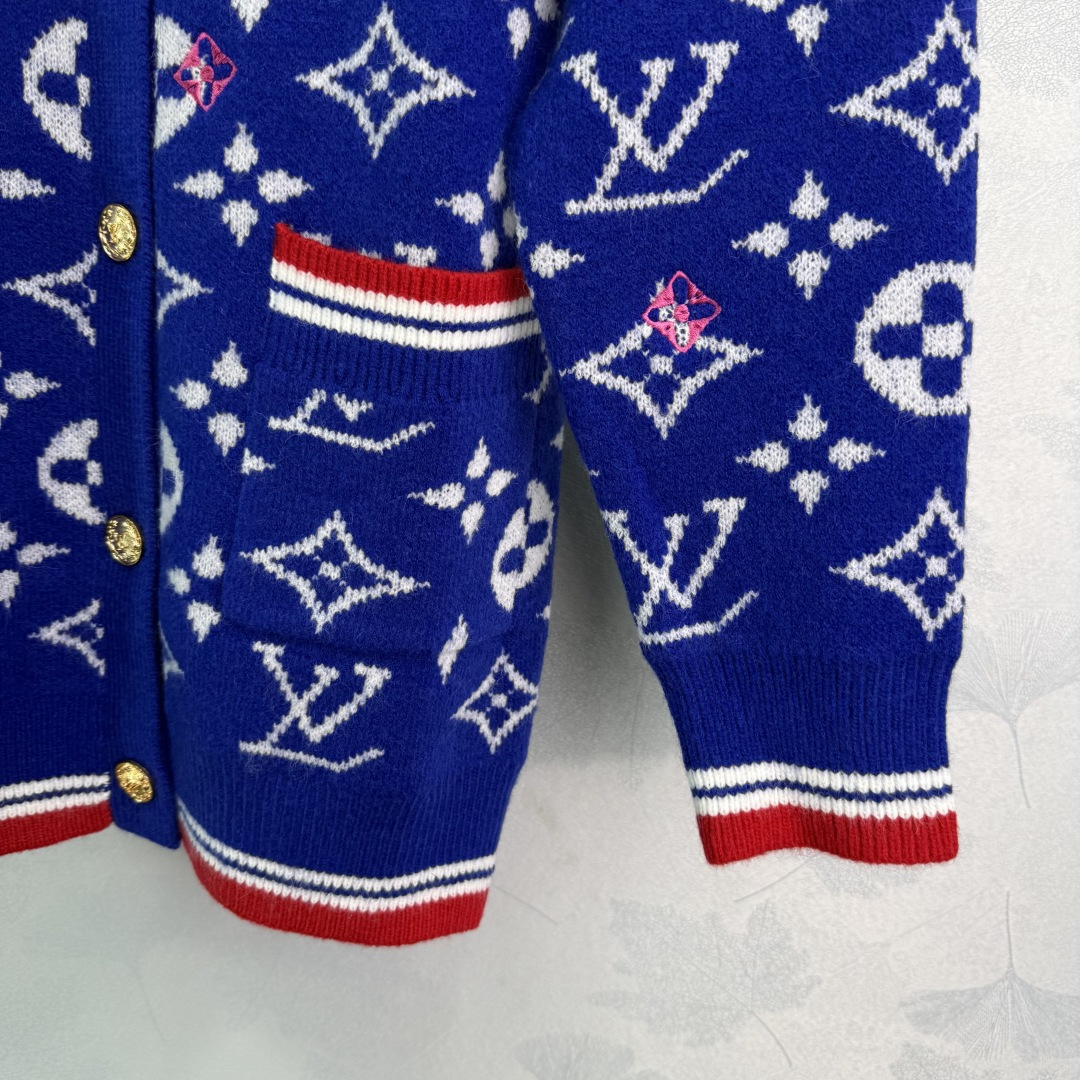 Details: Autumn knitted cardigan with gold buttons and red - white striped cuffs, made of high - quality wool yarn