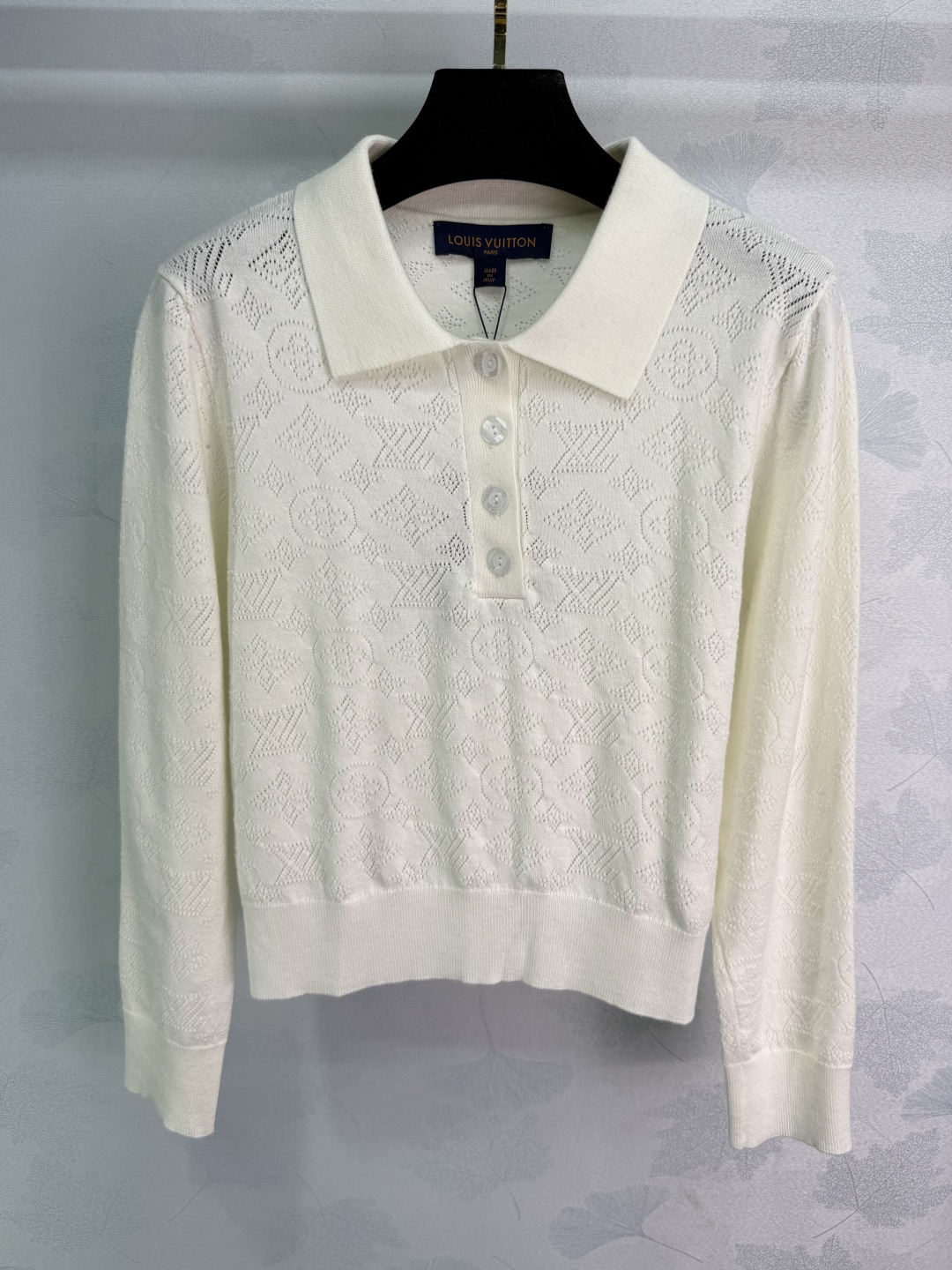 Details: Early autumn s new hollow-out knit blouse with breathable fabric, delicate patterns, and flattering fit, 2 colors.