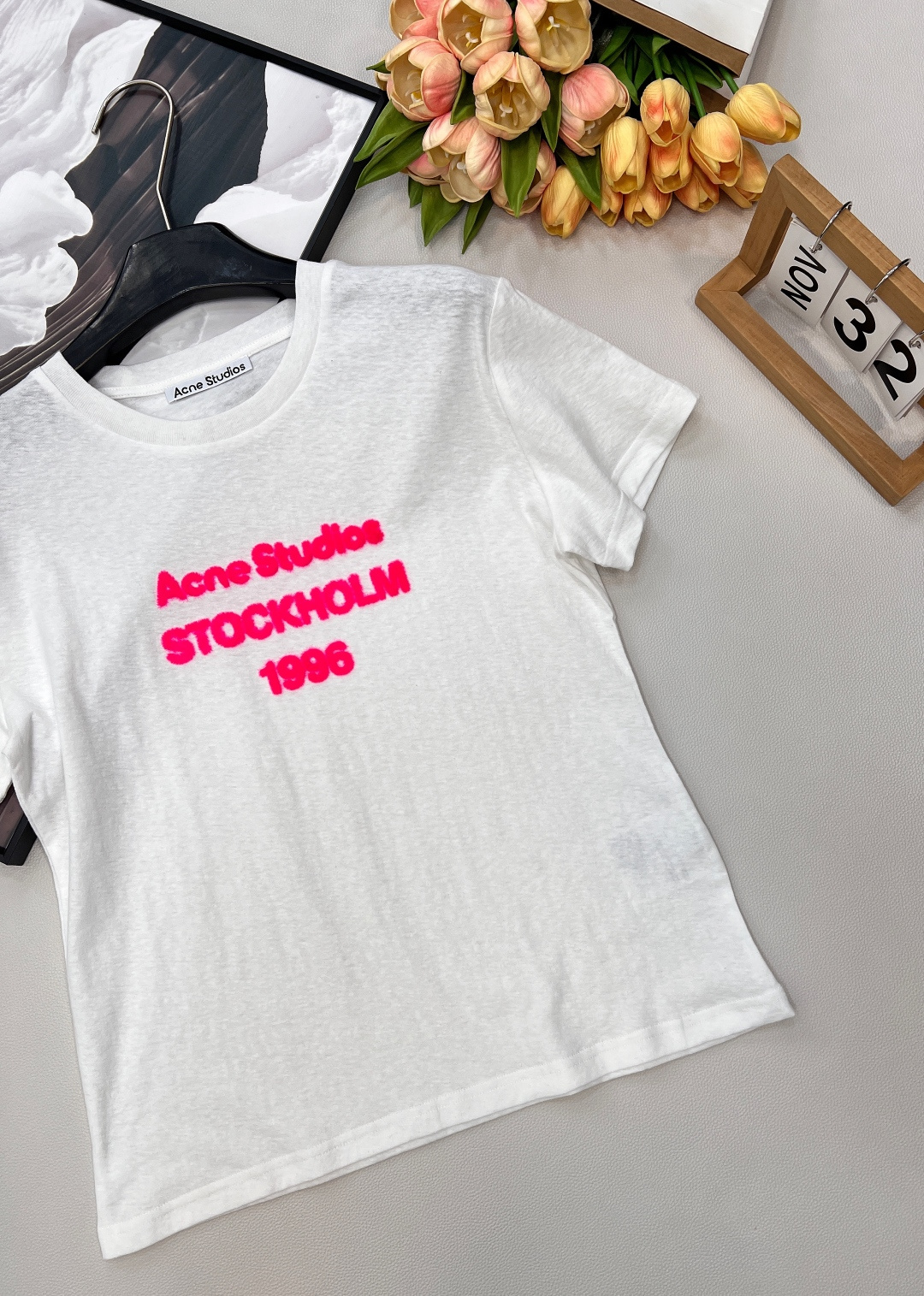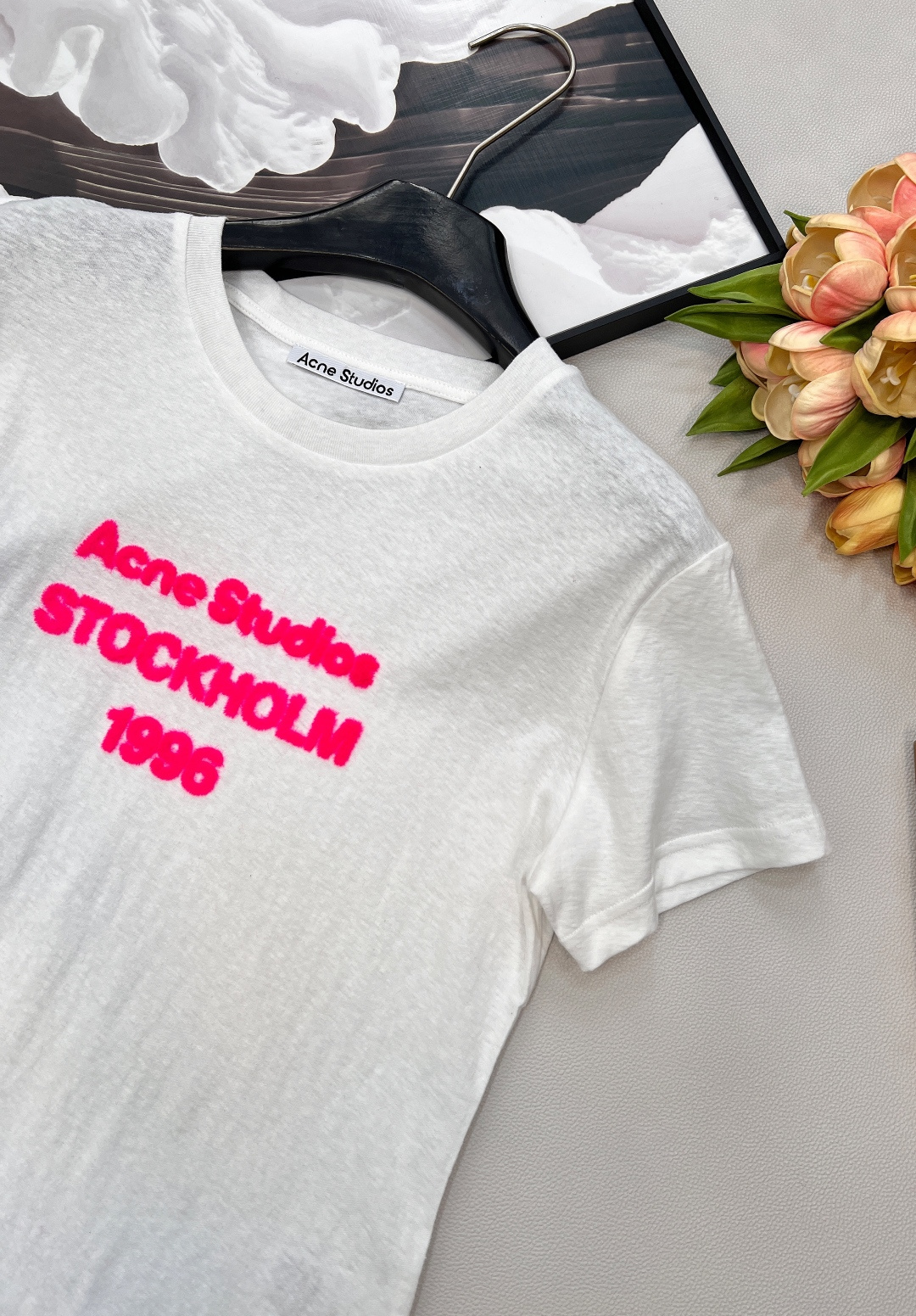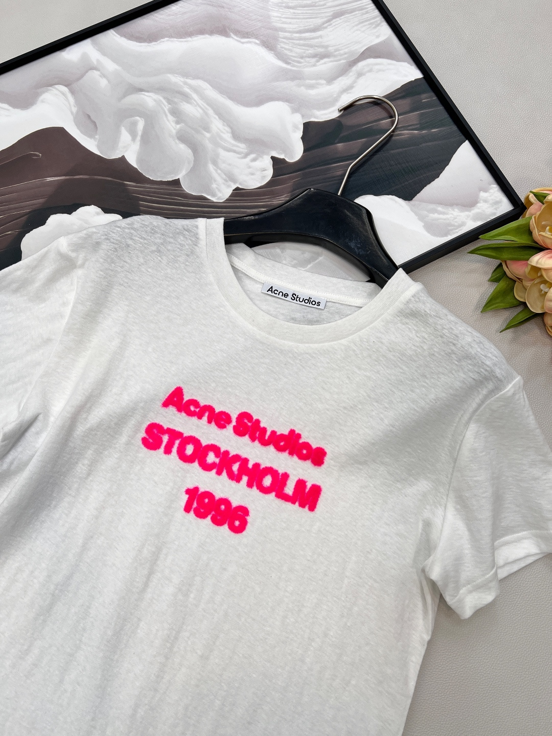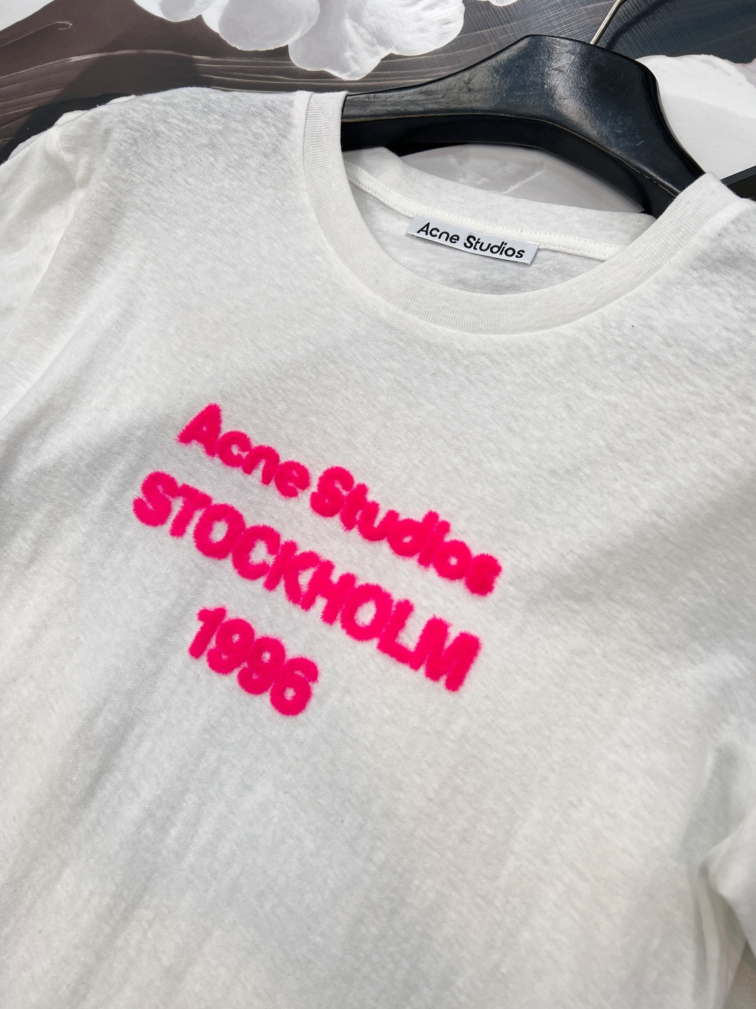 Details: Limited new 1996 letter printed flock short - sleeved T - shirt, soft cotton, trendy look. High - end customization, fine workmanship