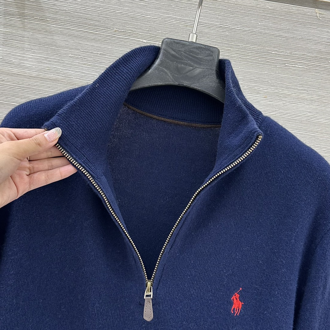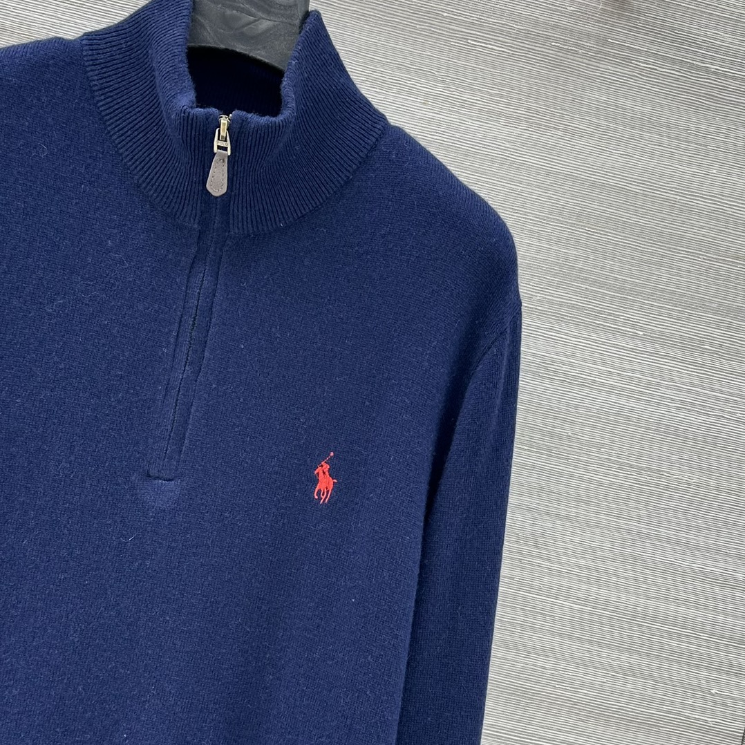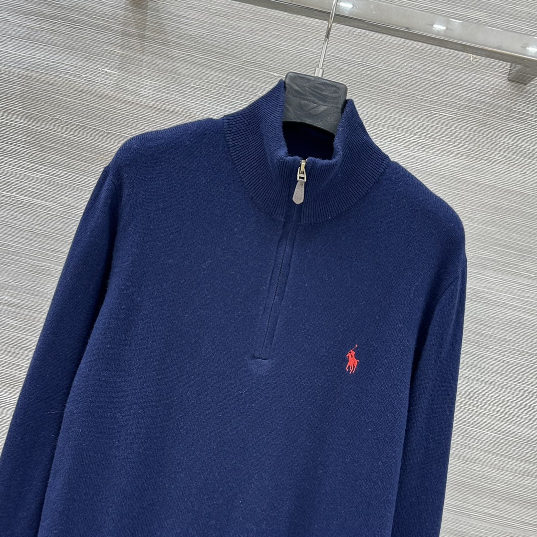 Details: College-style semi-zippered knitted top, loose fit, unisex, knight embroidery, cashmere-wool yarn, suitable for autumn and winter