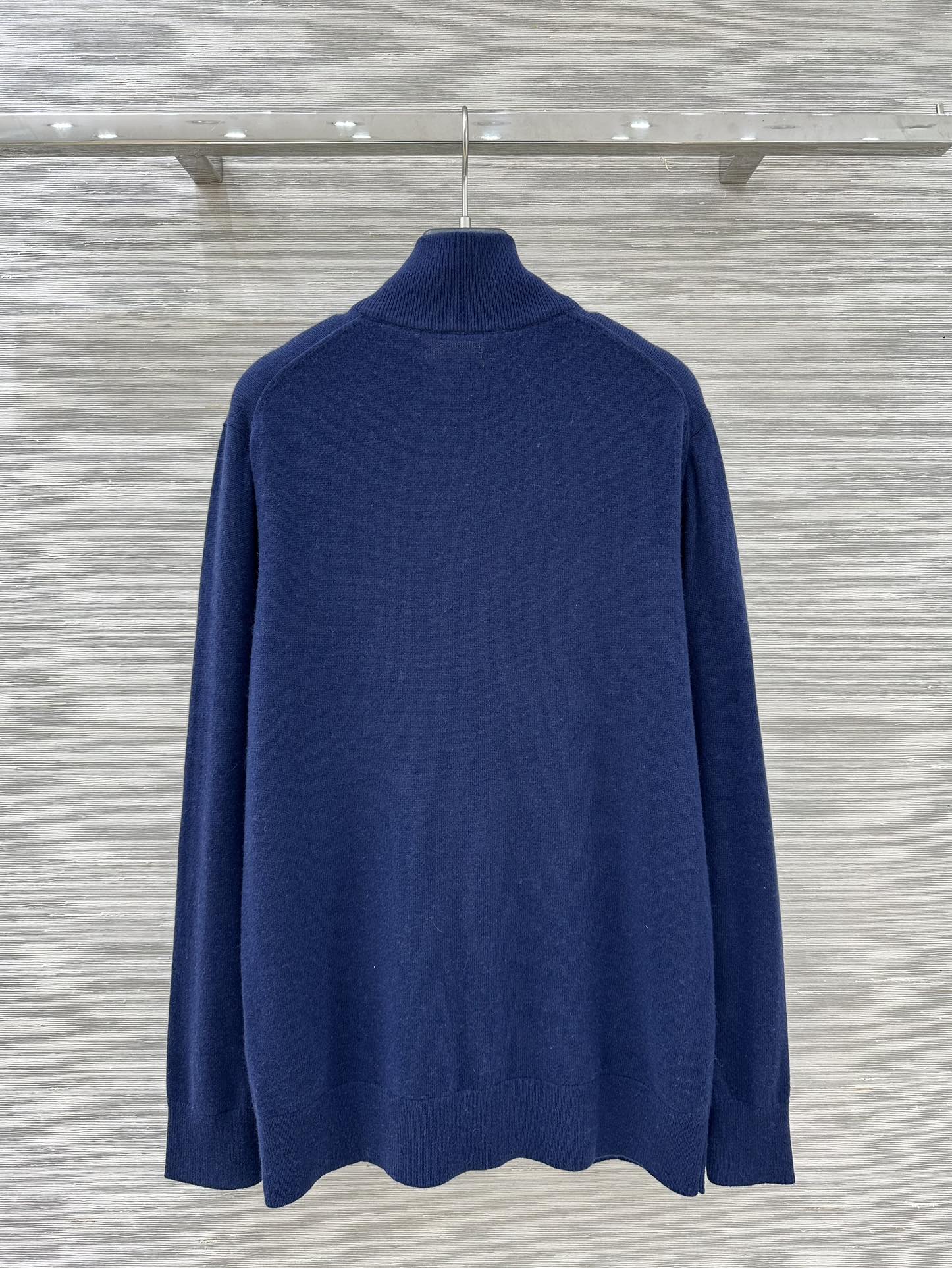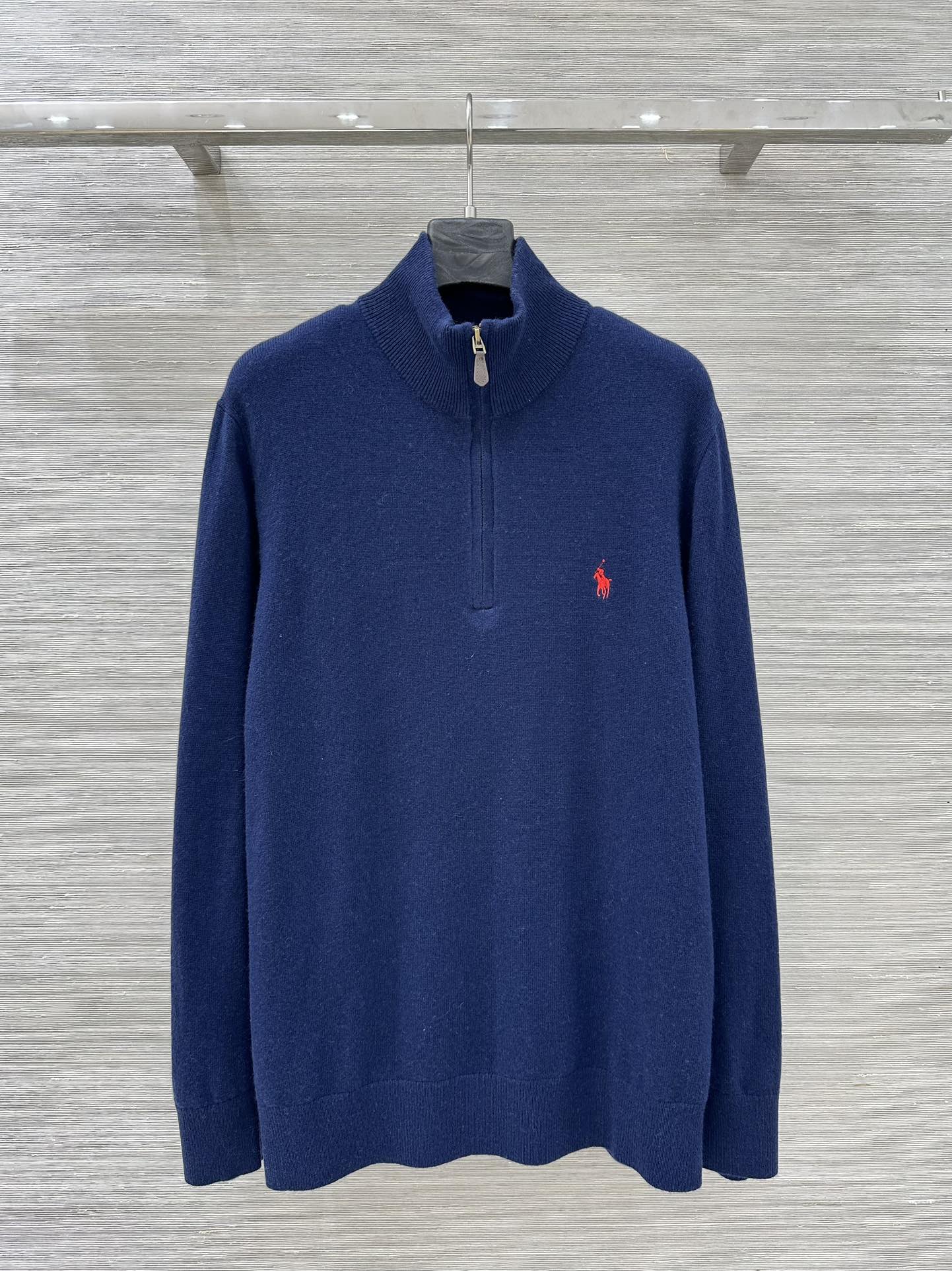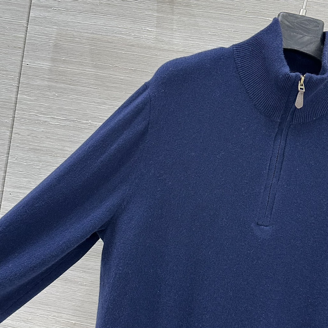Details: College-style semi-zippered knitted top, loose fit, unisex, knight embroidery, cashmere-wool yarn, suitable for autumn and winter