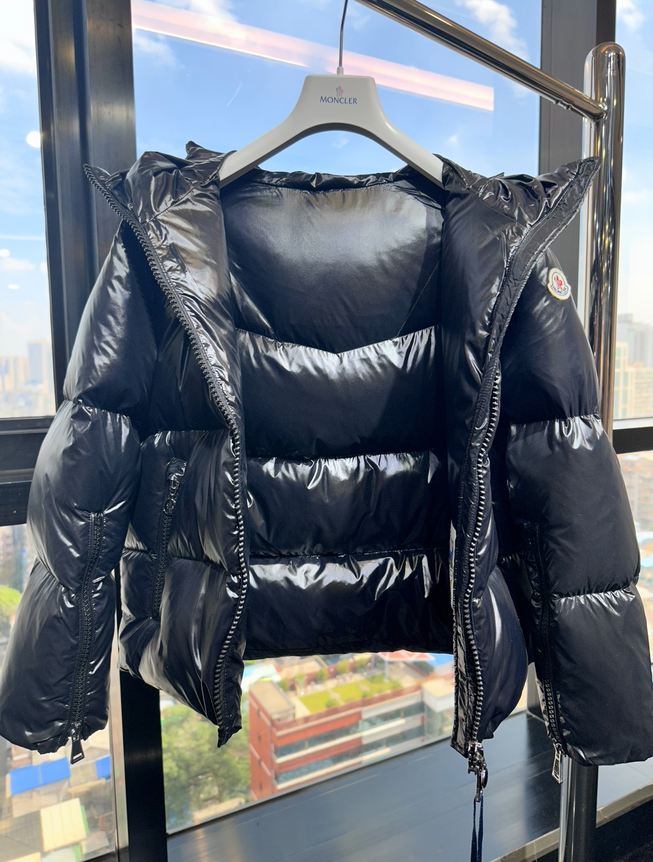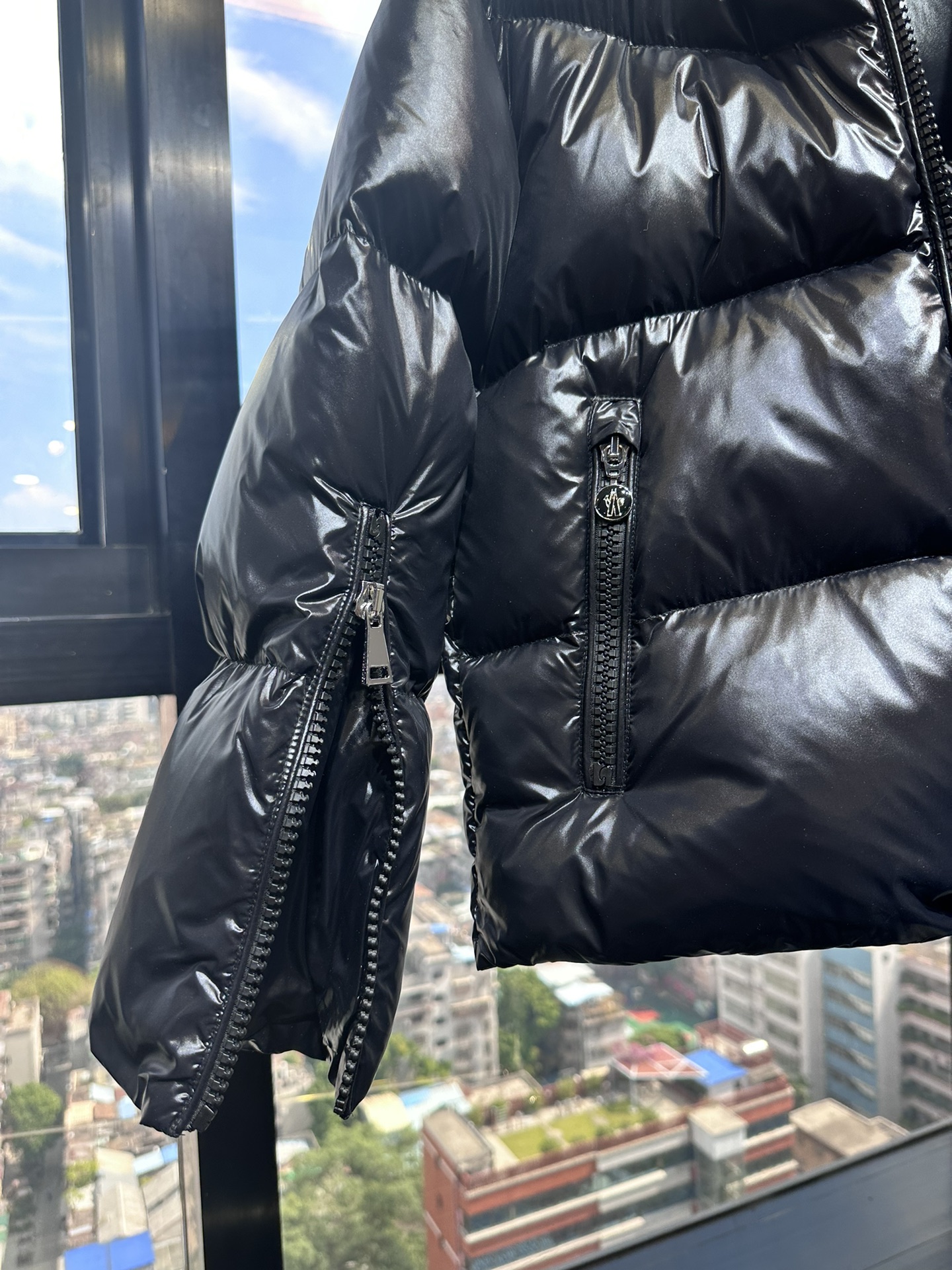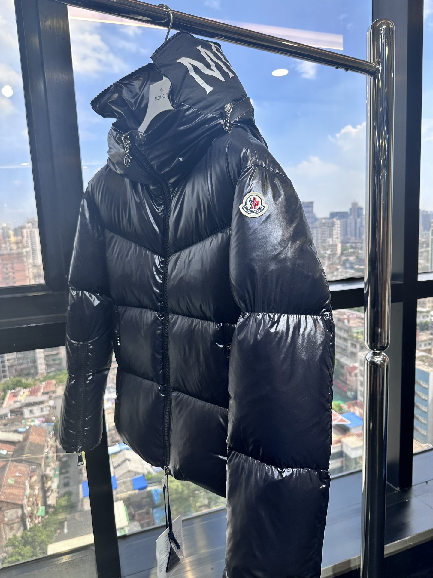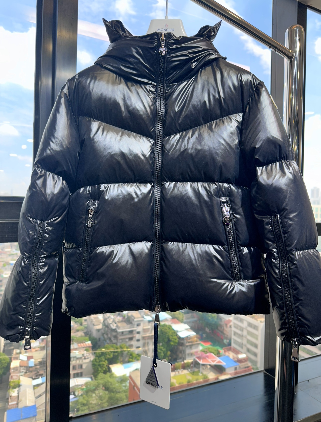 Details: New short down jacket made of nylon laque fabric, with a wide collar, available in 2 colors, sizes SML and unisex. High - end custom with fine workmanship