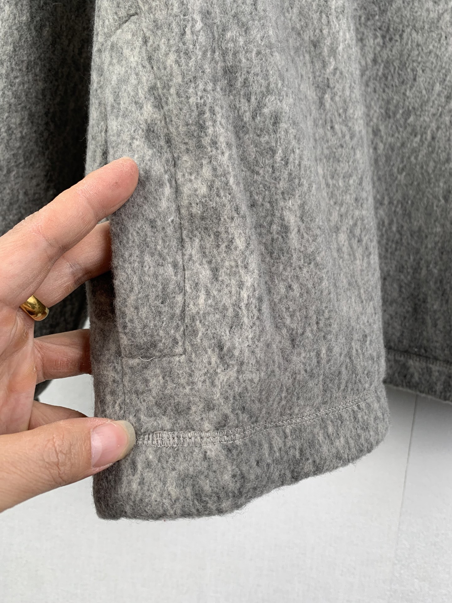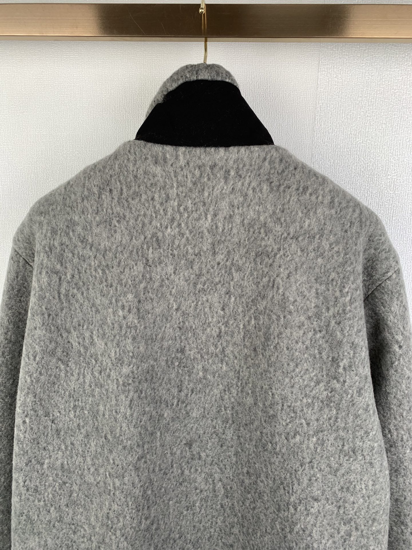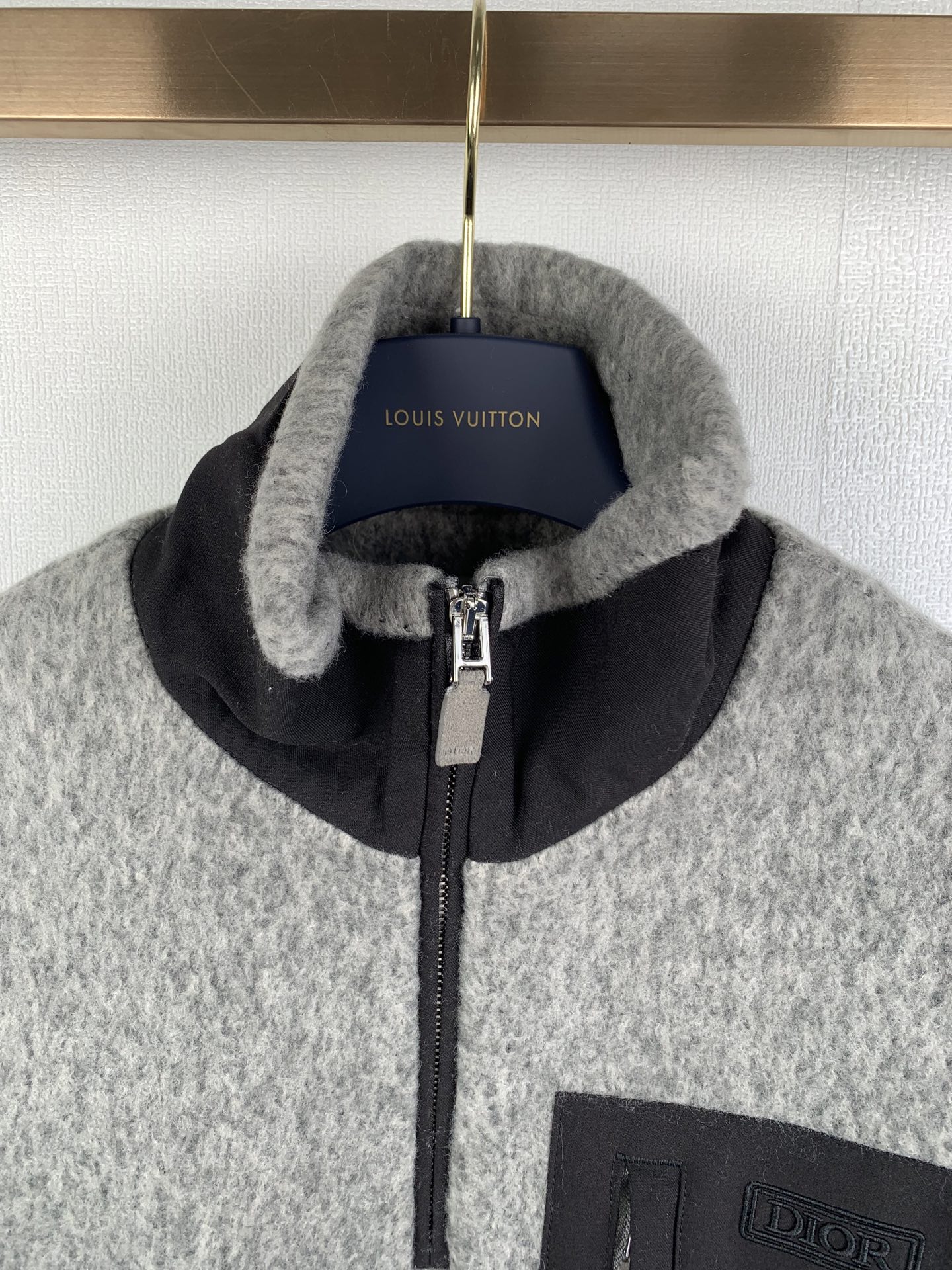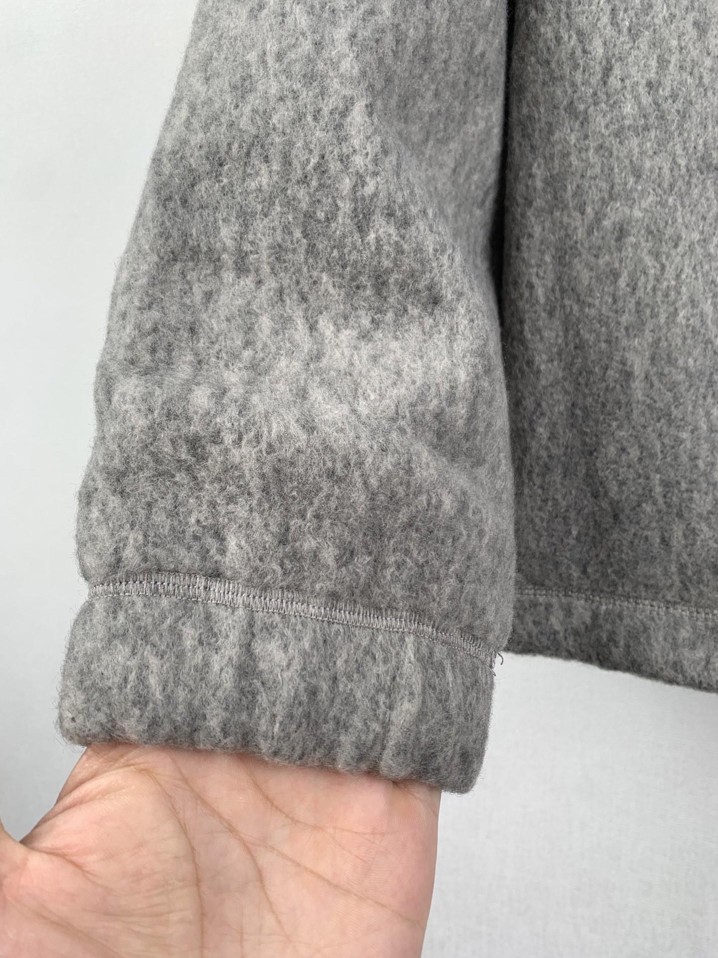 Details: White cashmere and wool fleece sweatshirt with zip collar and contrast details.
