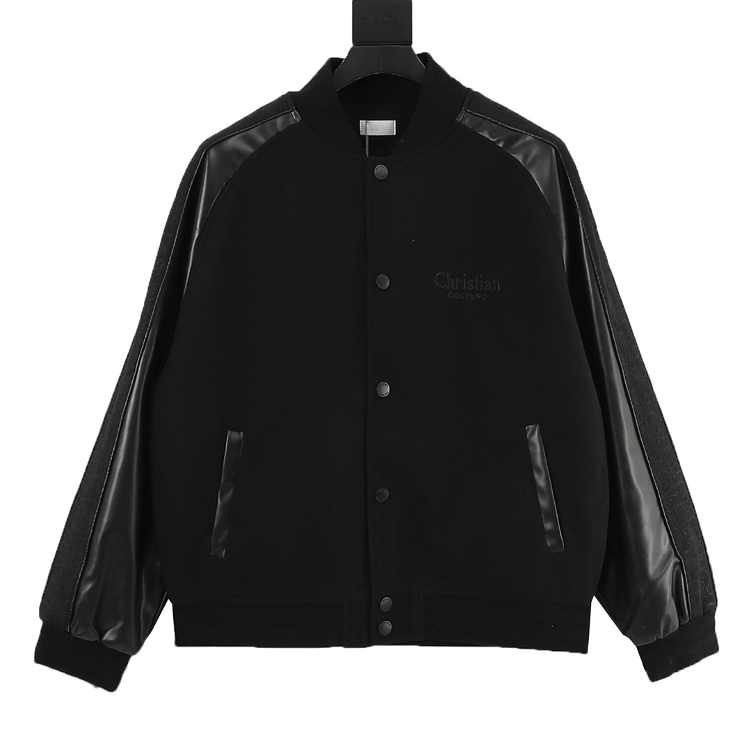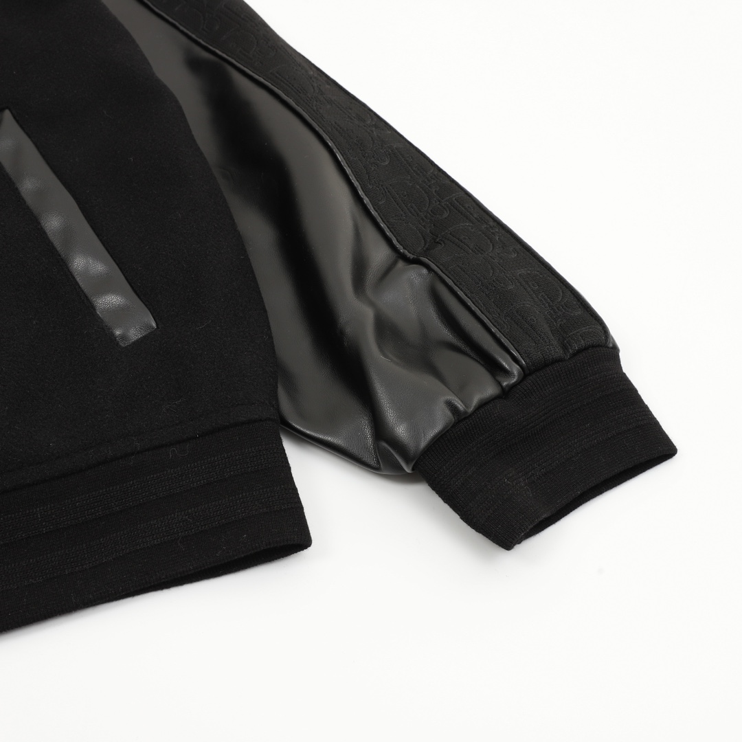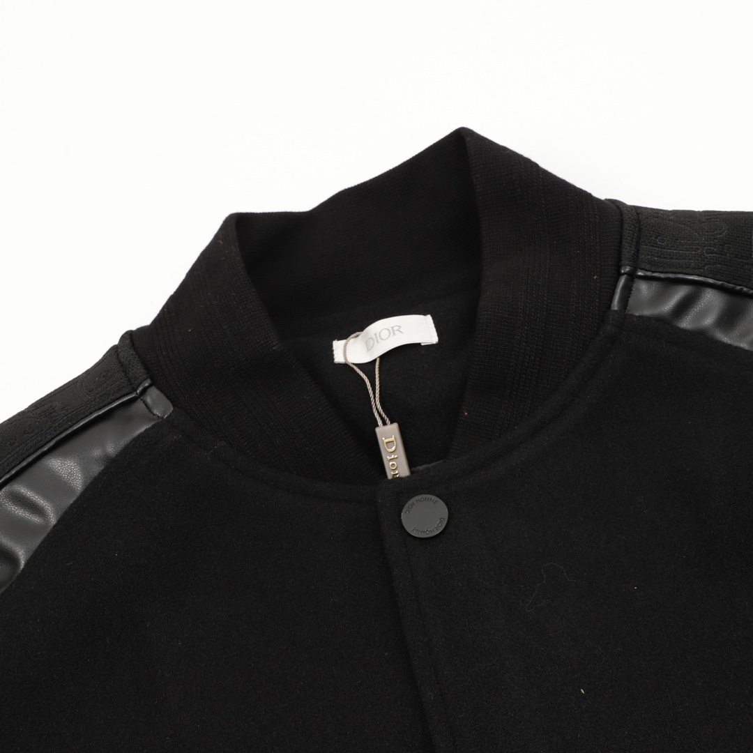 Details: Baseball jacket with leather sleeves and embroidery. The custom fabric has high color fastness. It comes with logo snap buttons, a knitted ribbed hem, and a smooth cupro lining.