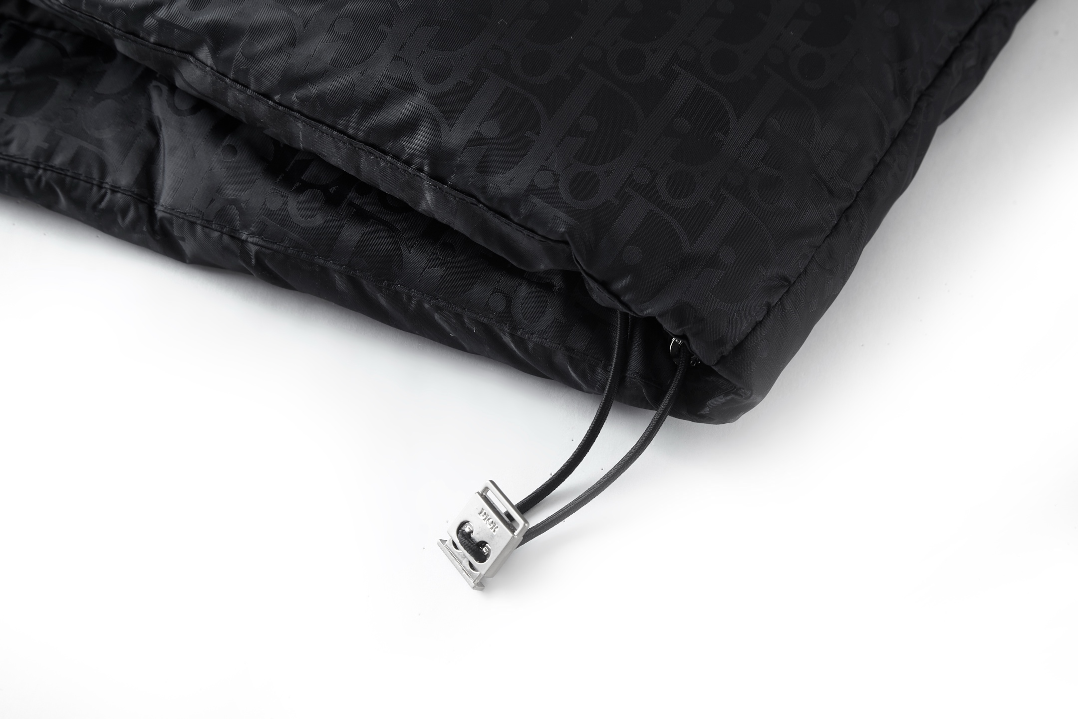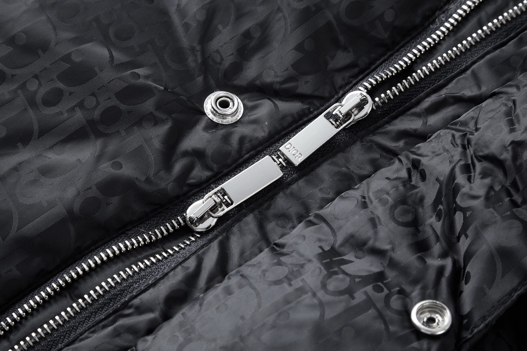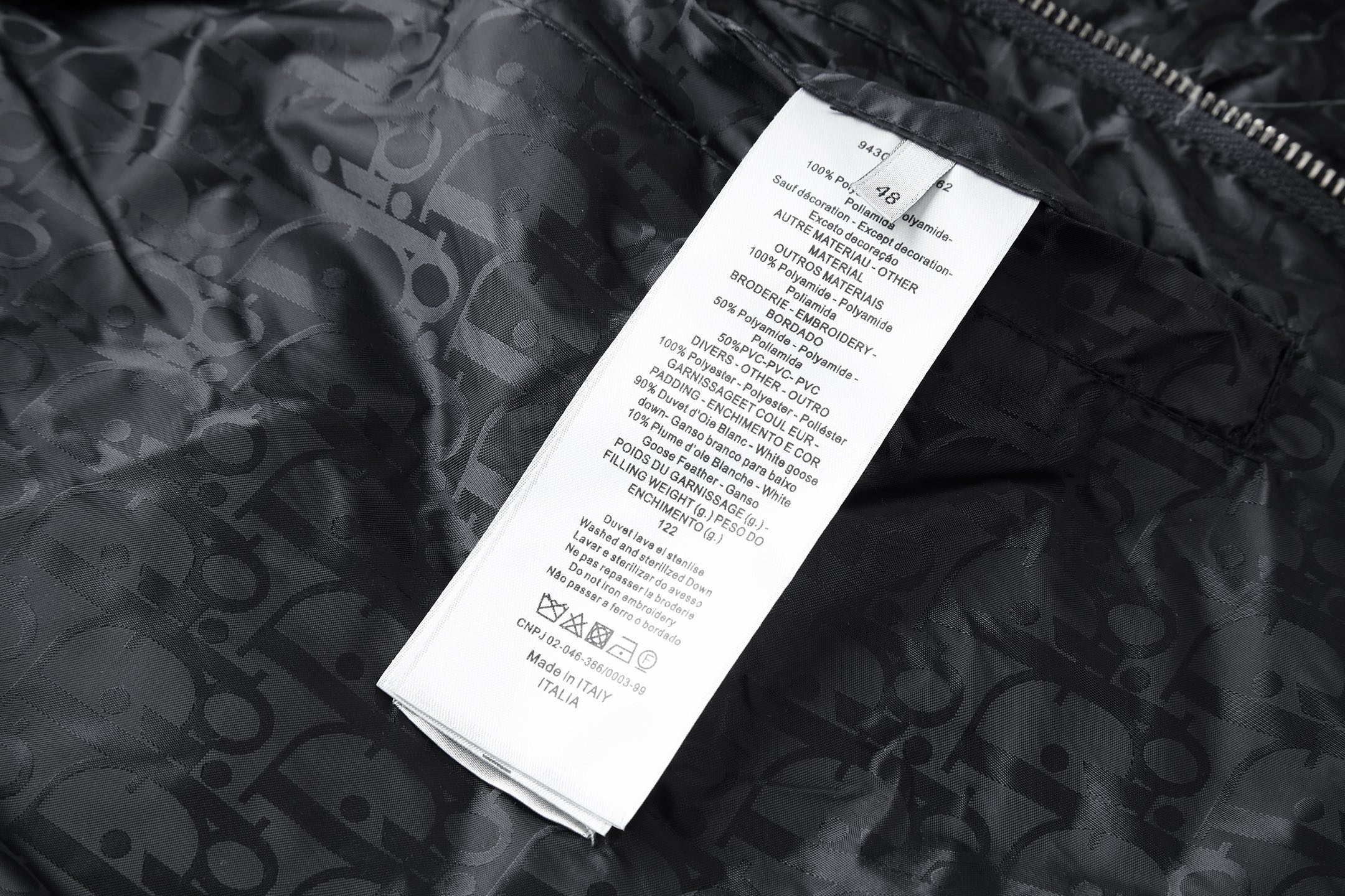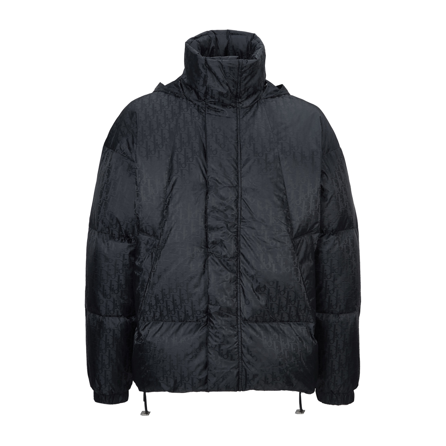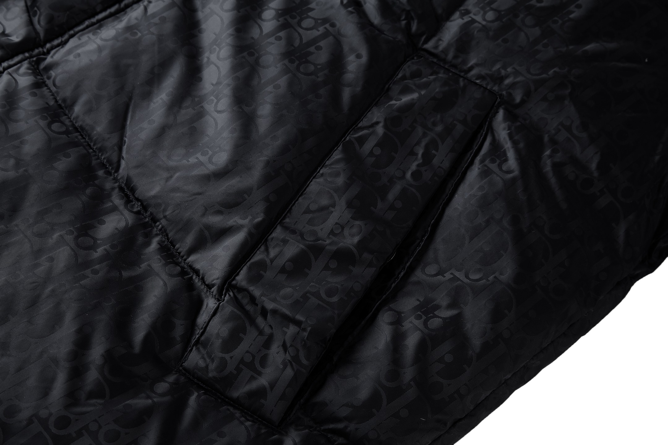 Details: Quilted Down Jacket with Printed Logo and Rubber Patch, Side Zip Pockets