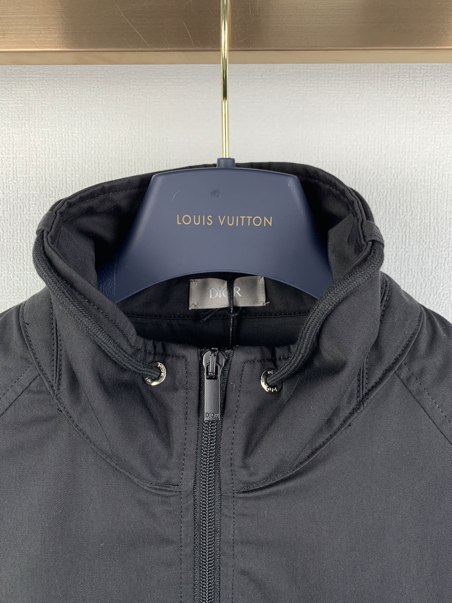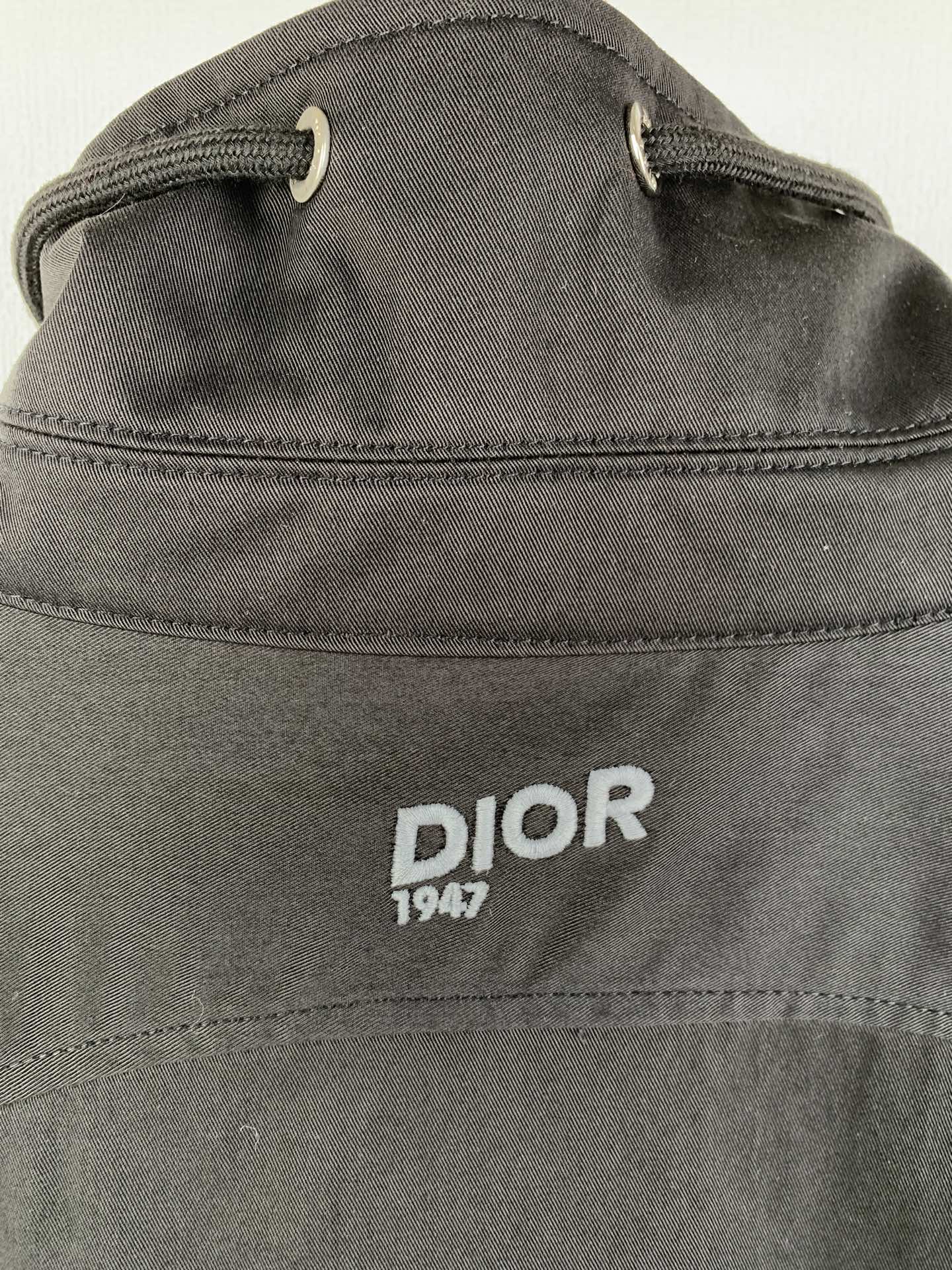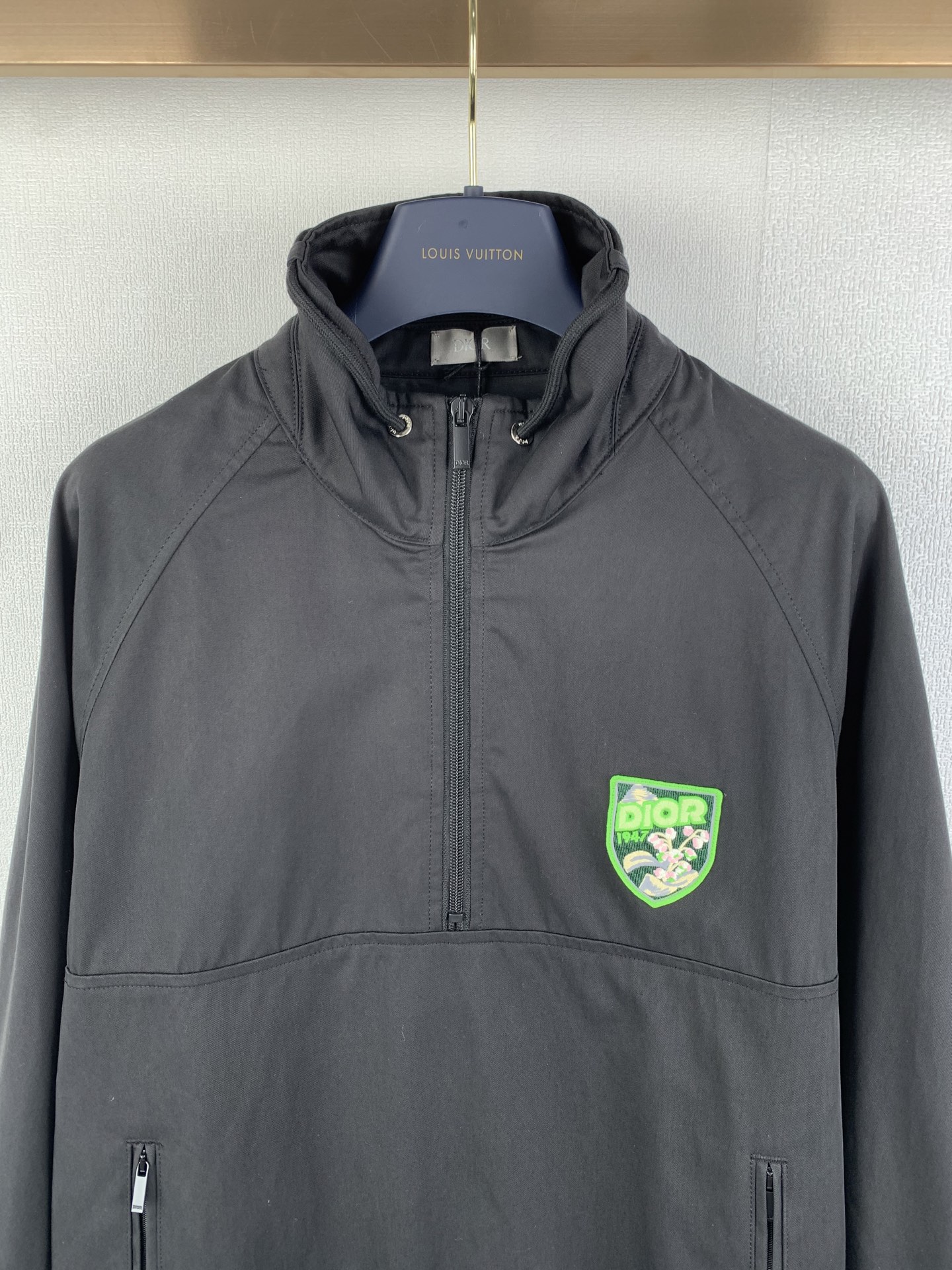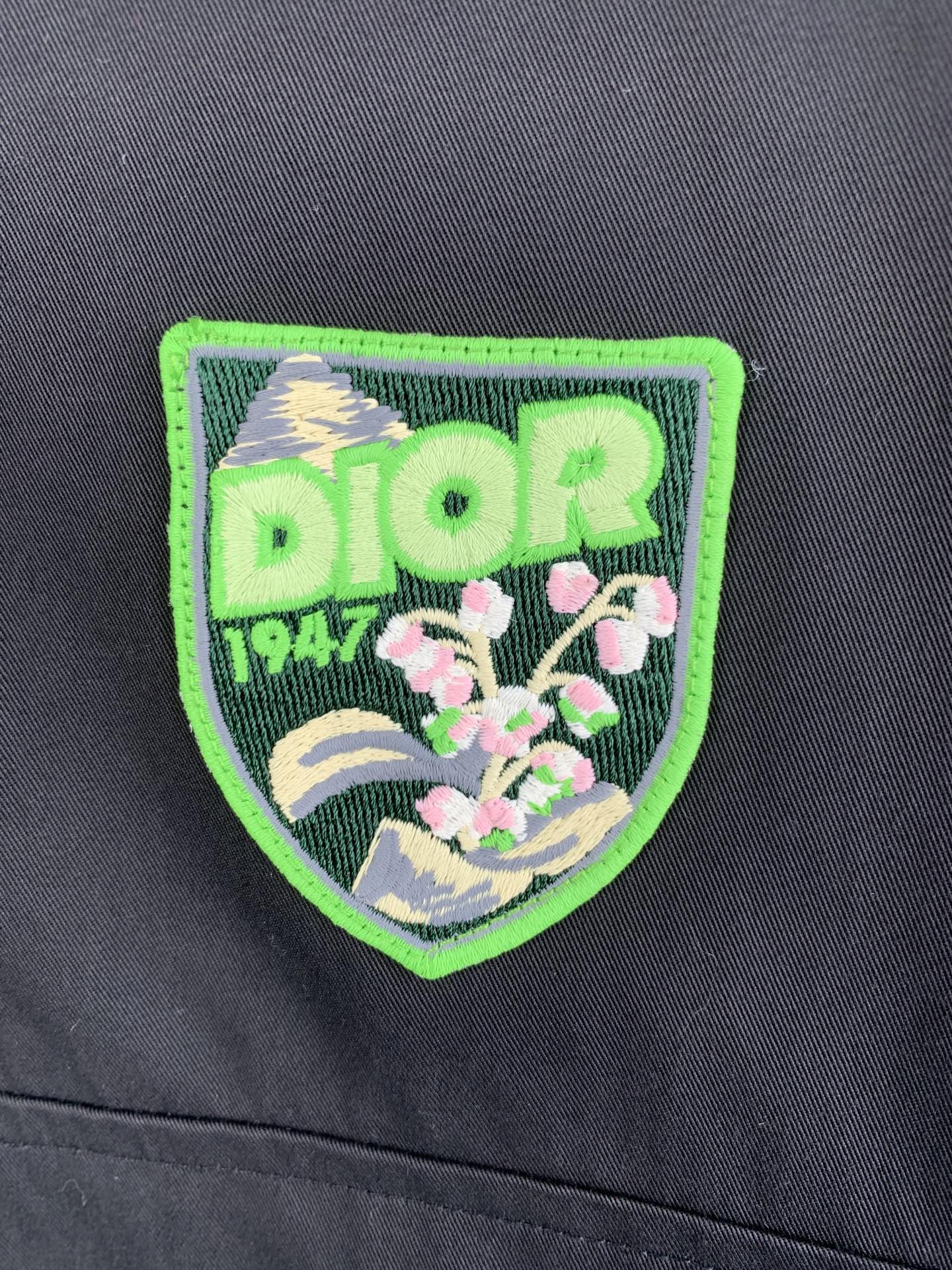 Details: New pullover jacket with patches, black cotton blend, Dior logo on the back
