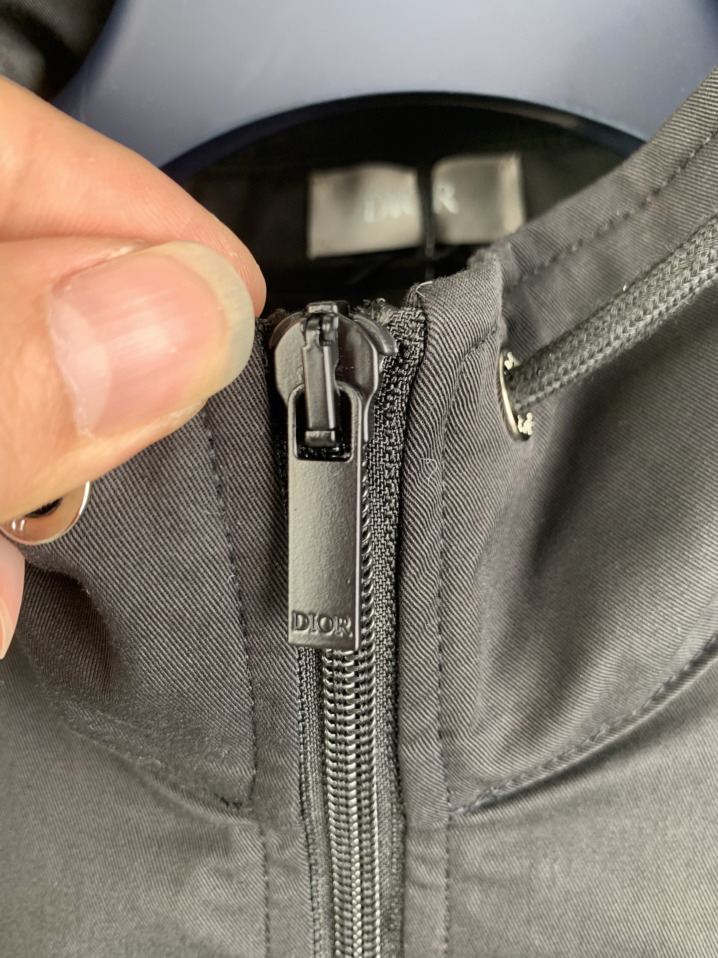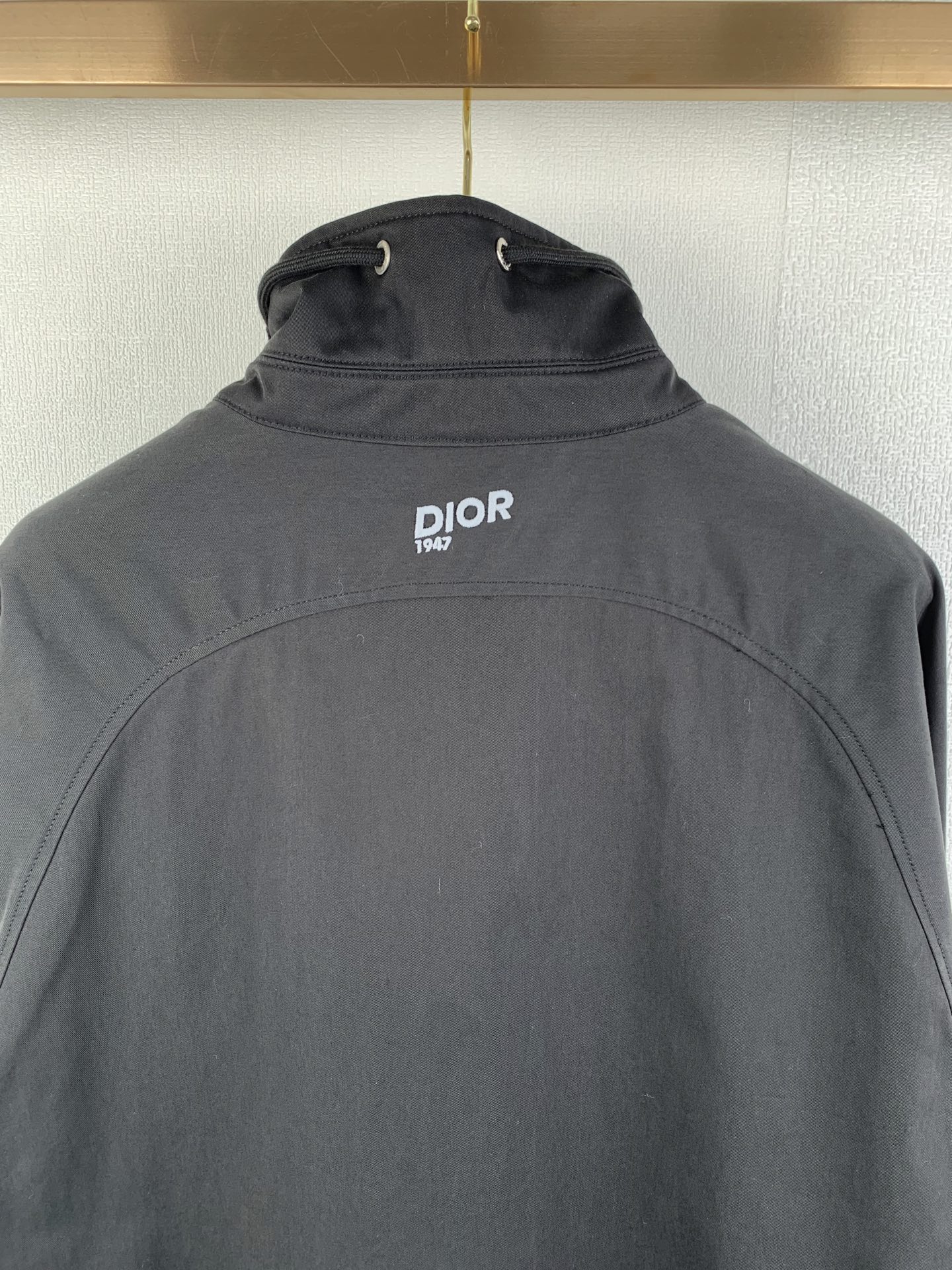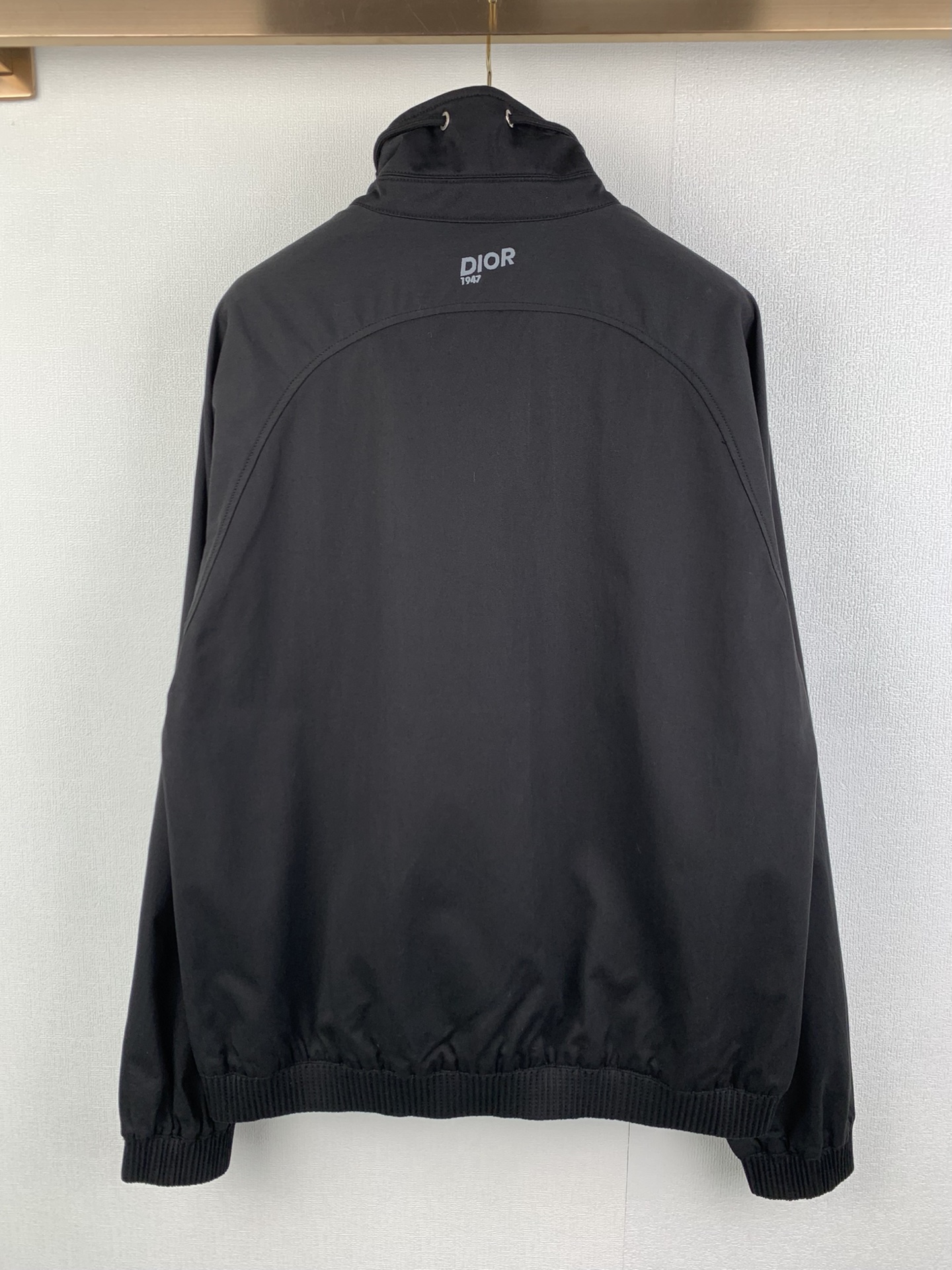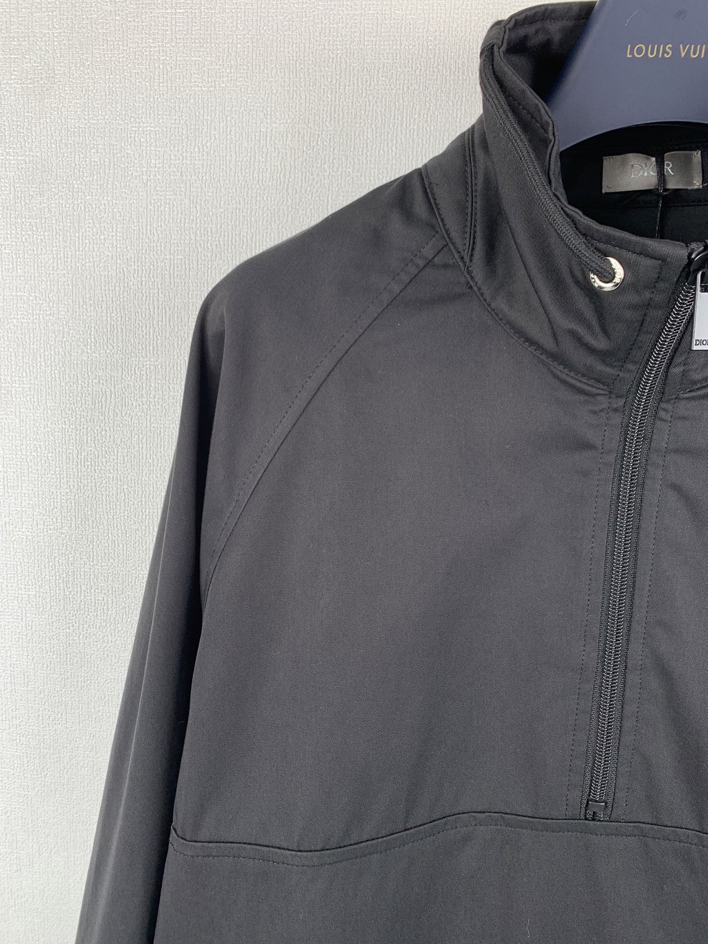Details: New pullover jacket with patches, black cotton blend, Dior logo on the back