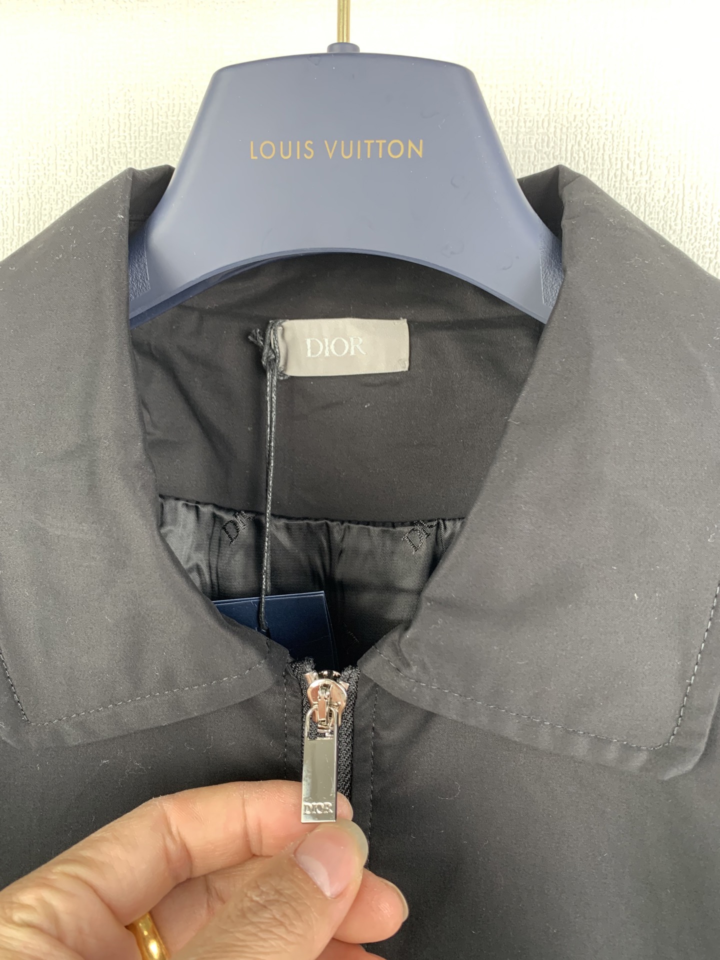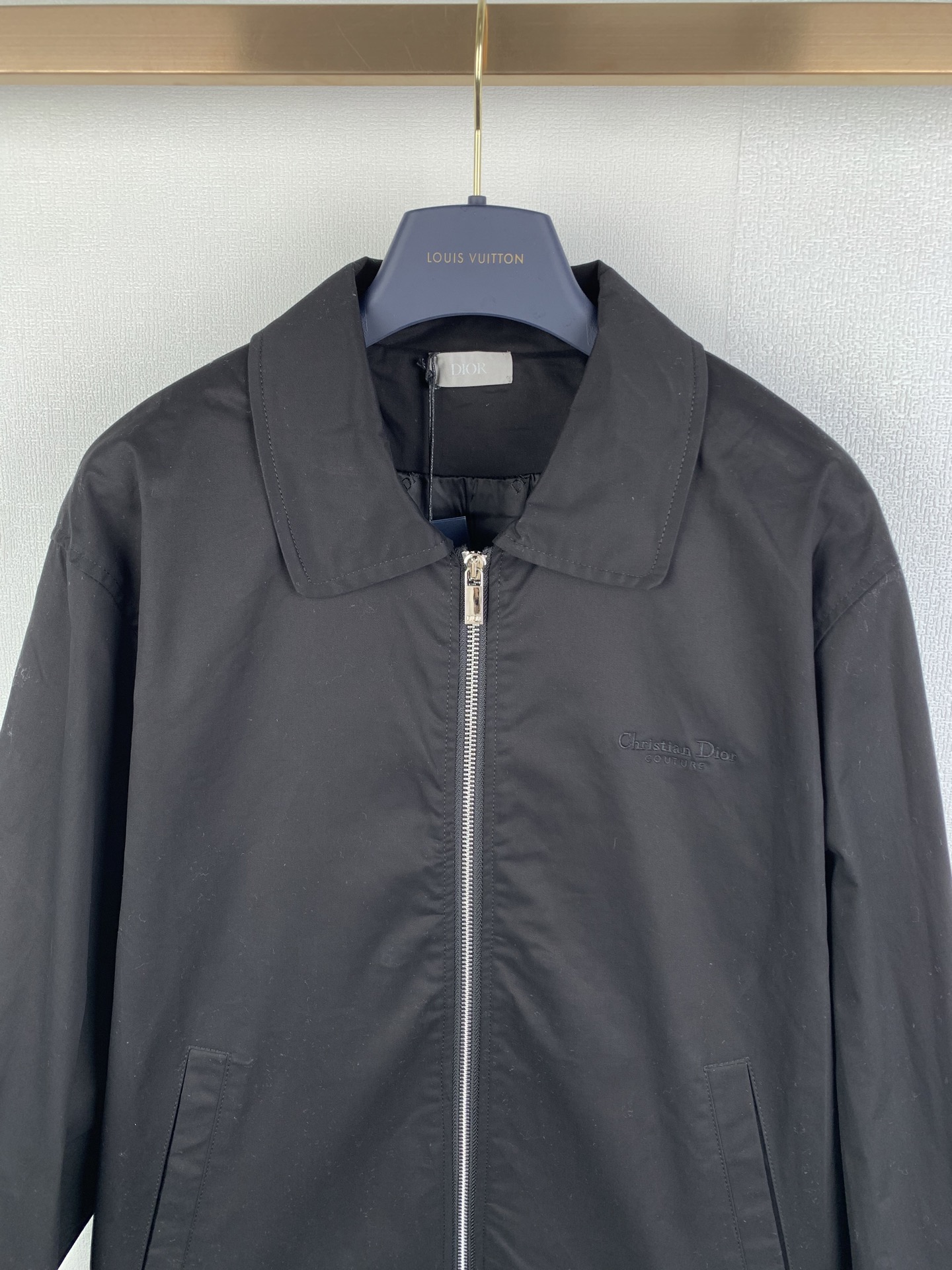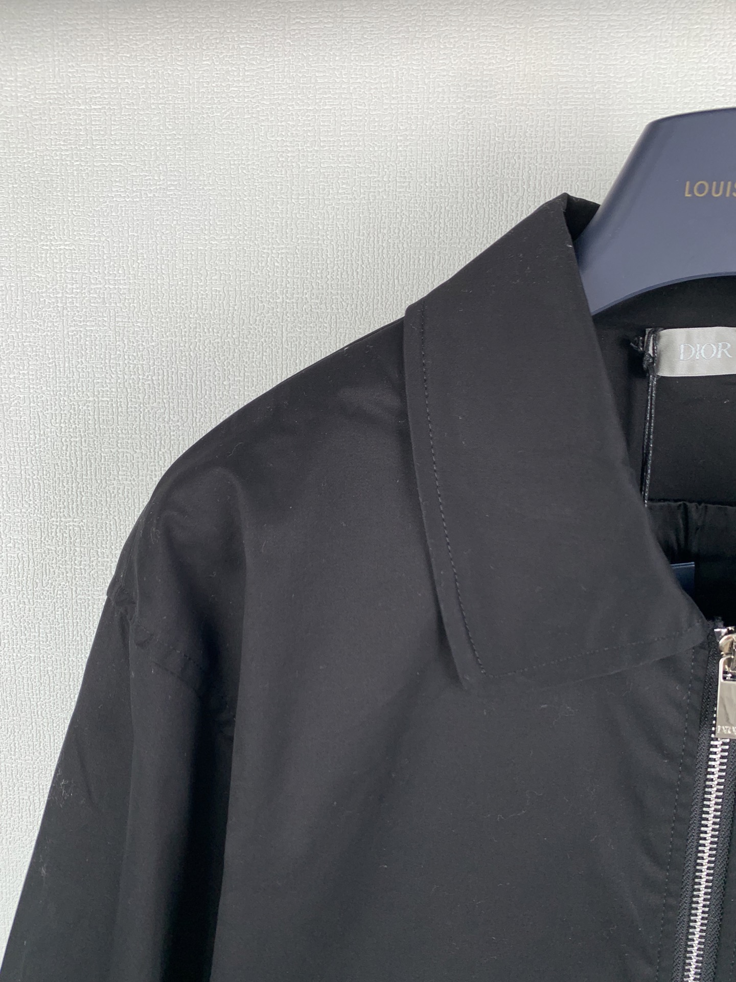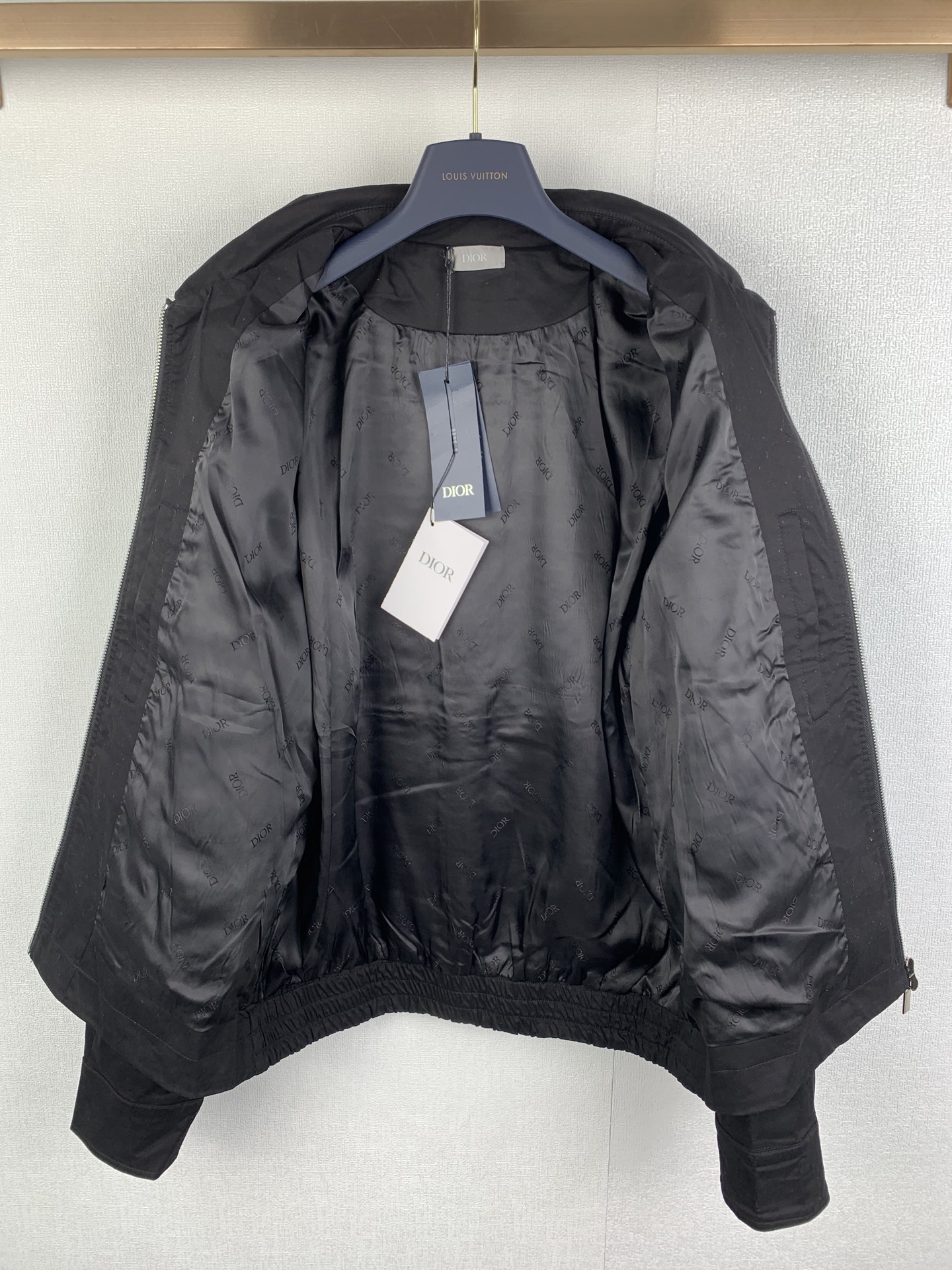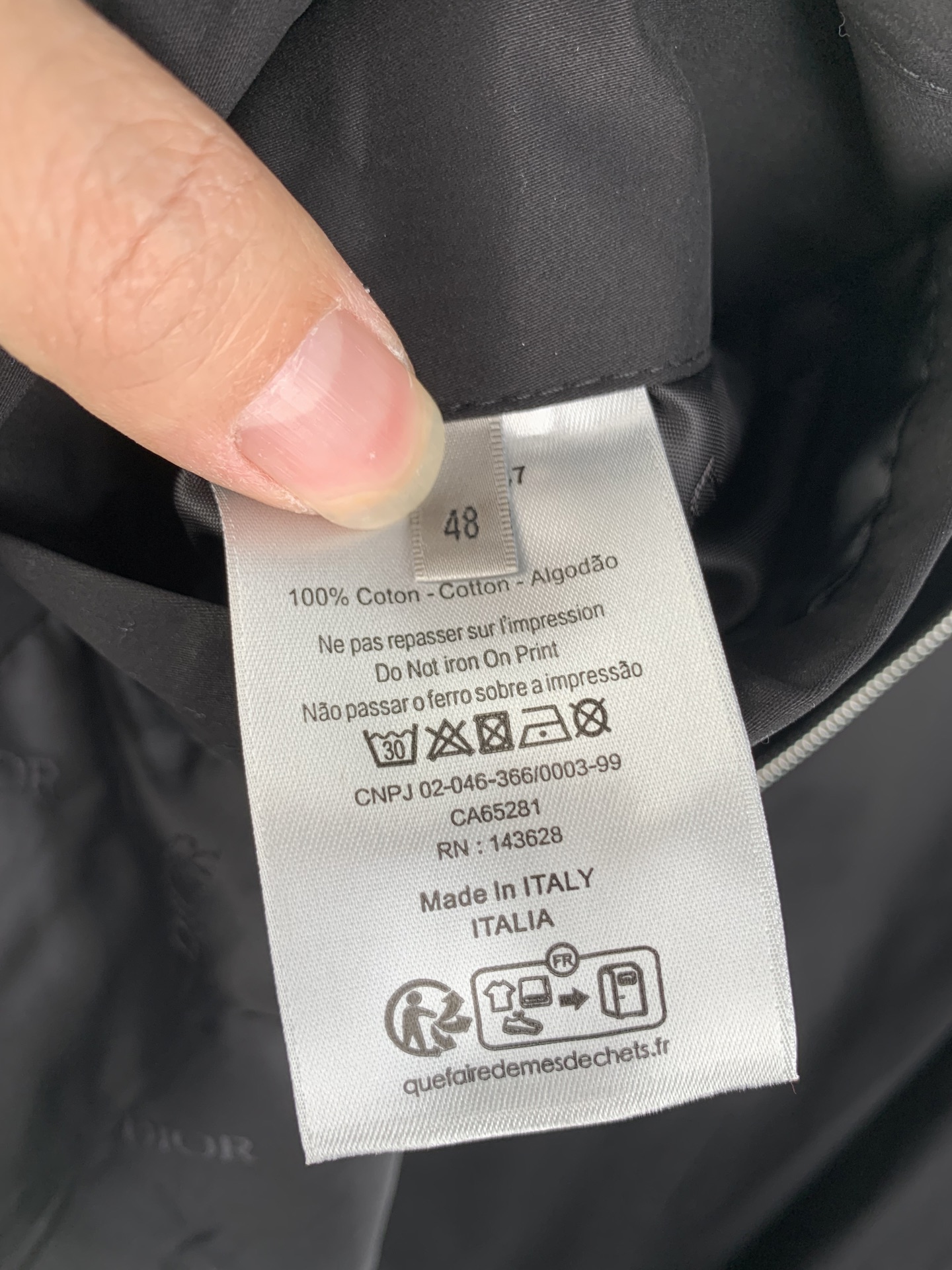 Details: Black double-sided cotton blend satin jacket with a unique back pocket.
