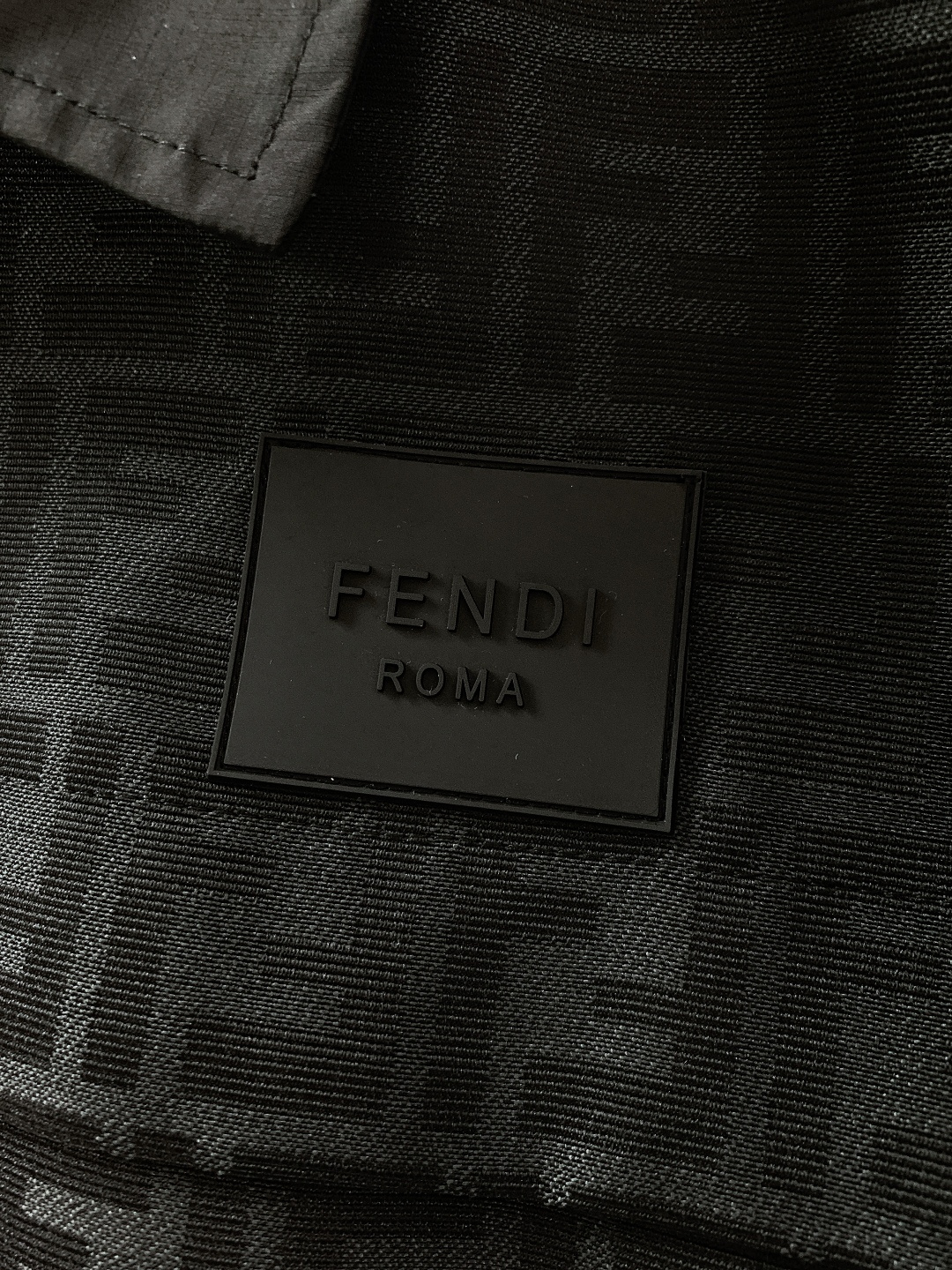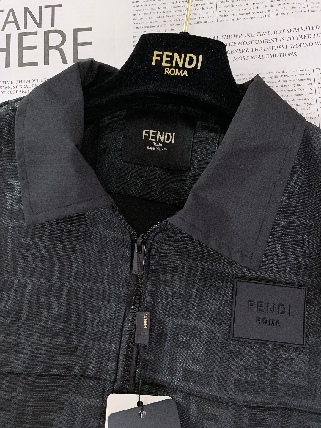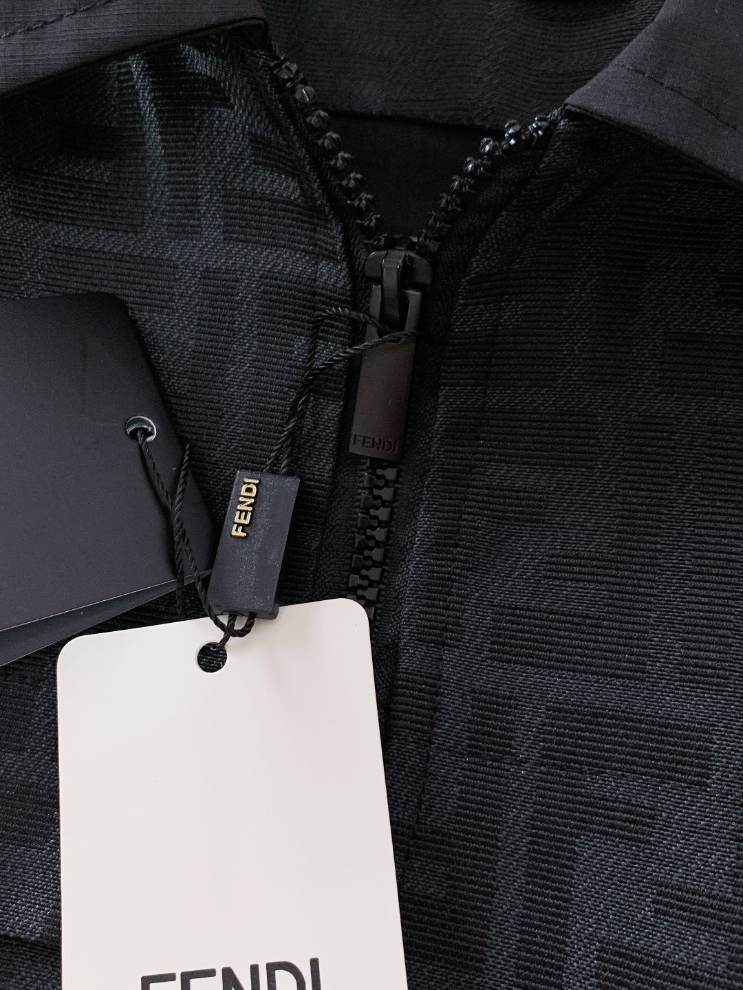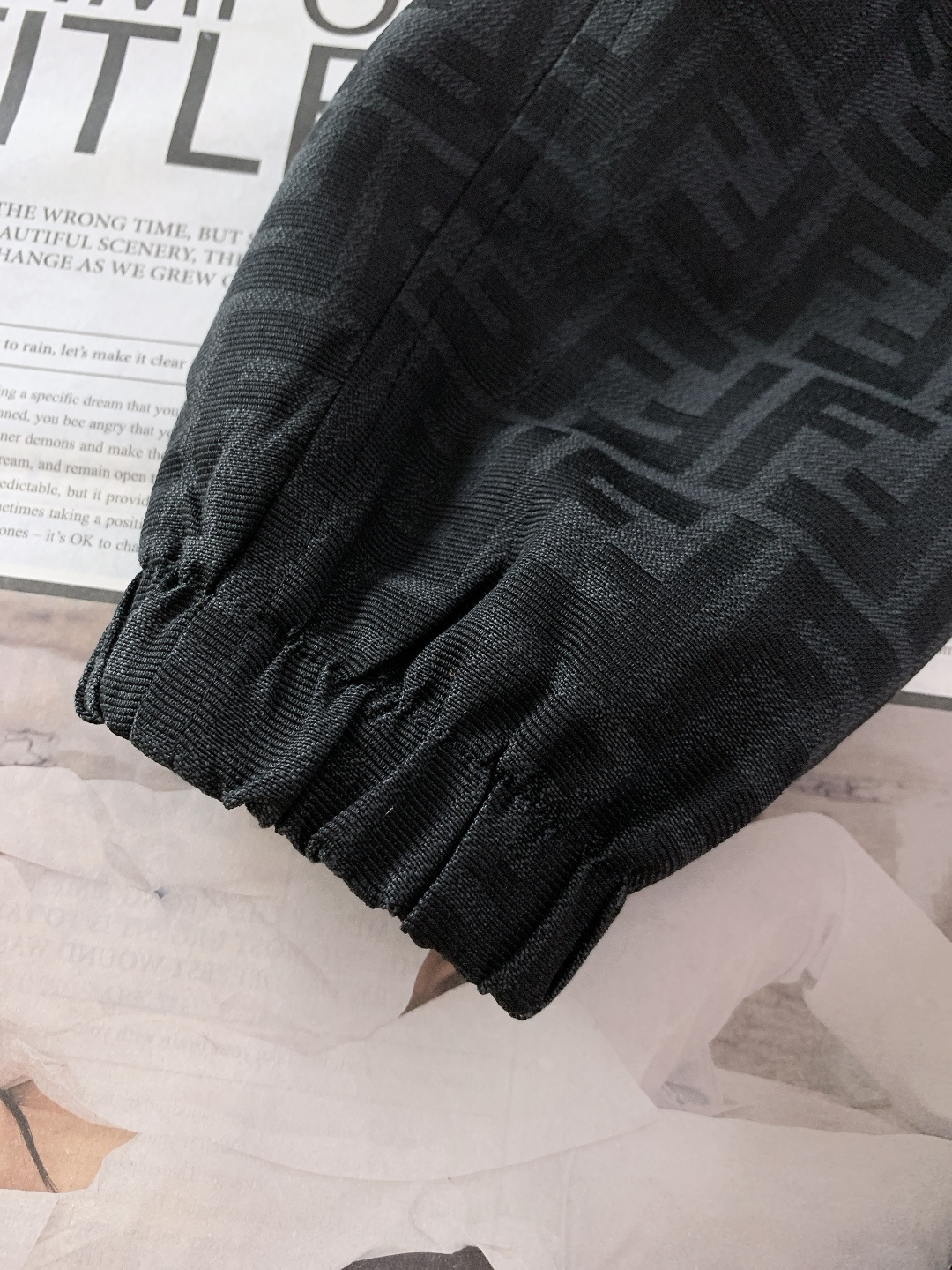 Details: Black jacket with brand - printed texture, fashionable and well - crafted