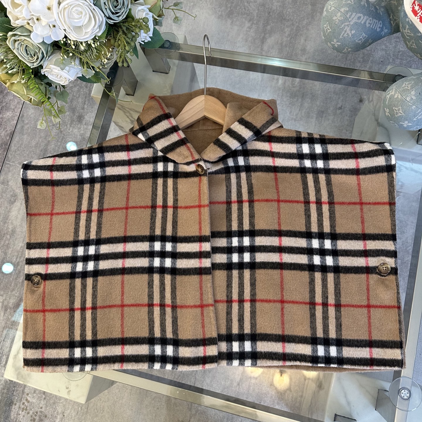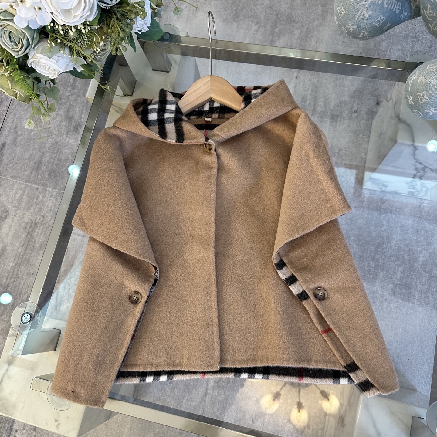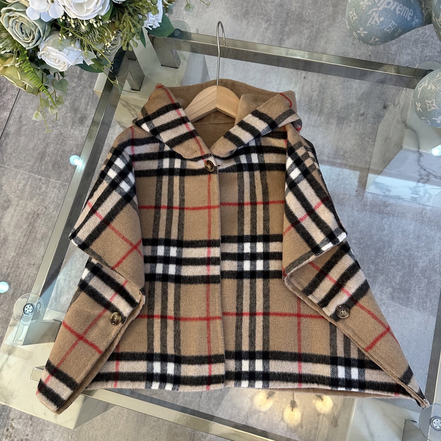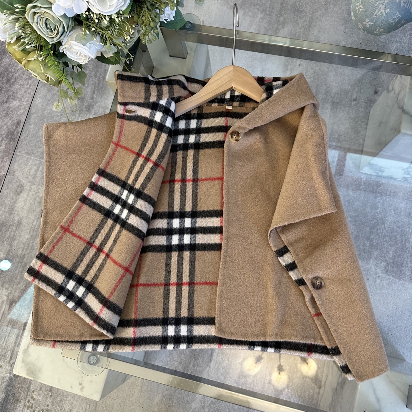 Details: Burberry high-end girls double-sided checkered cashmere cape, British retro style