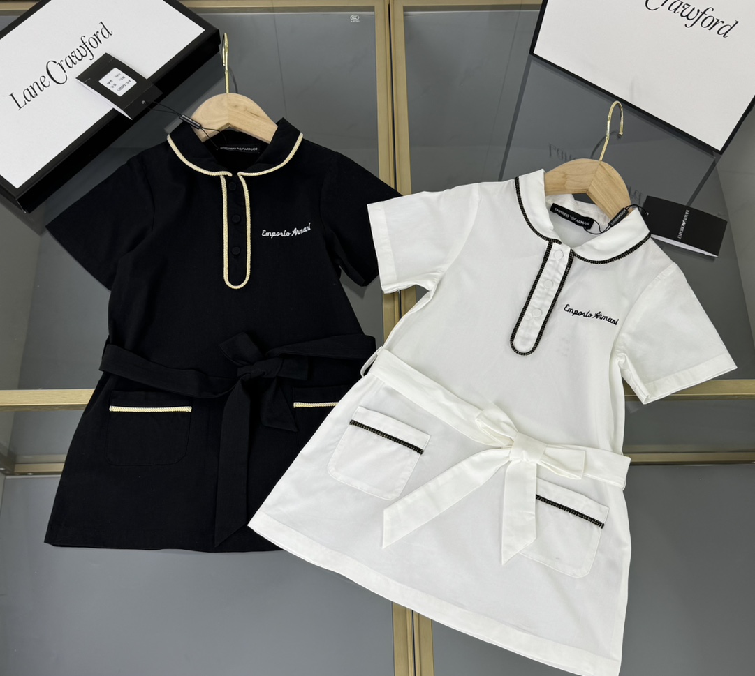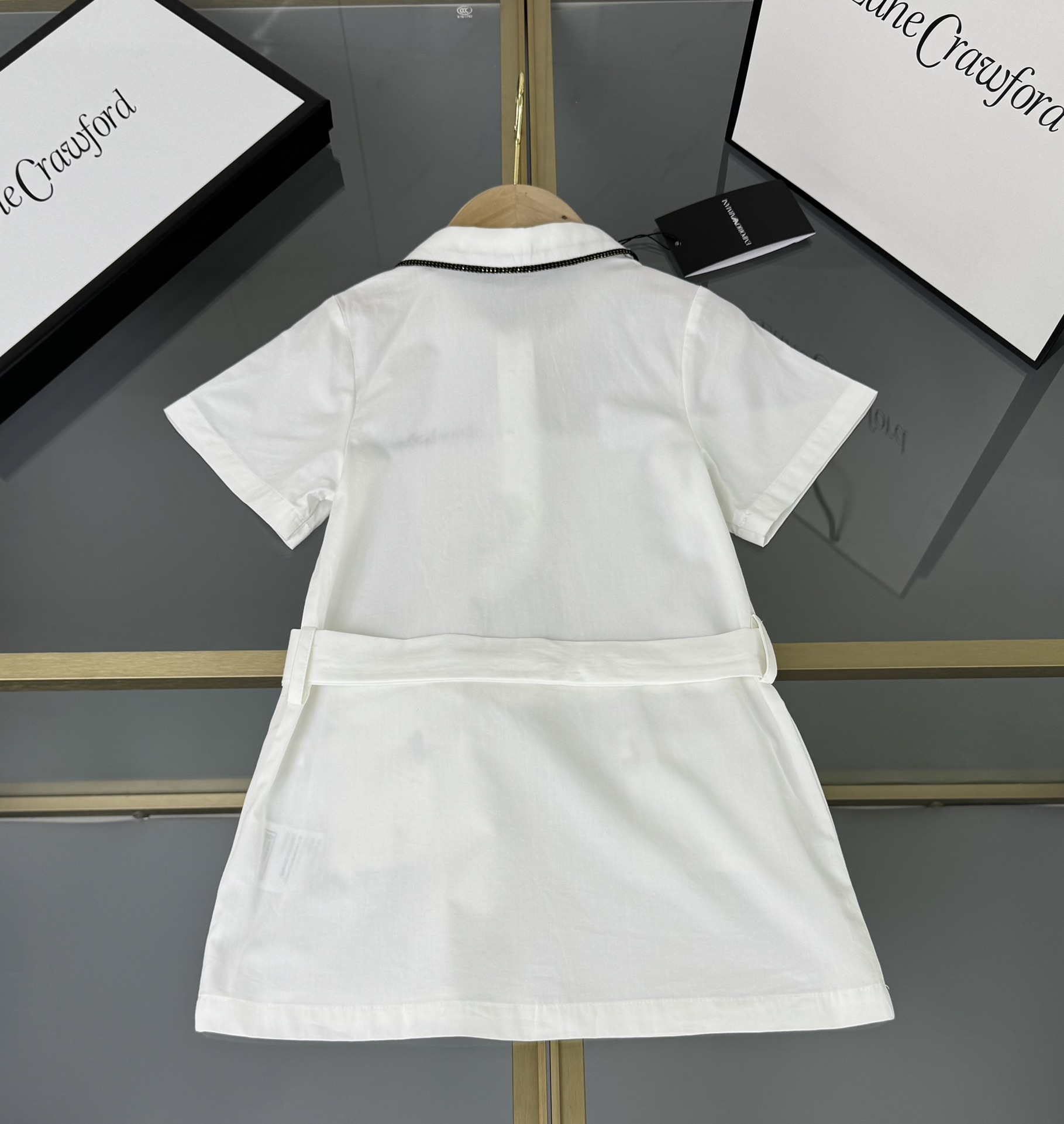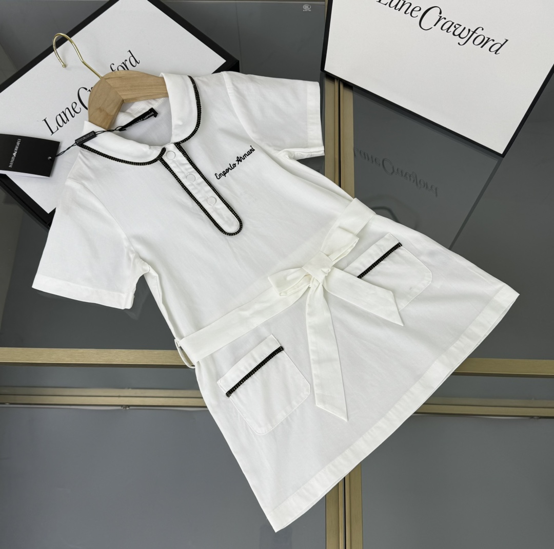 Details: Armani girls A - line dresses in solid color with matching belt, pure cotton