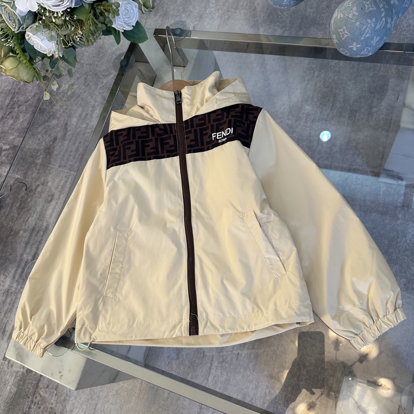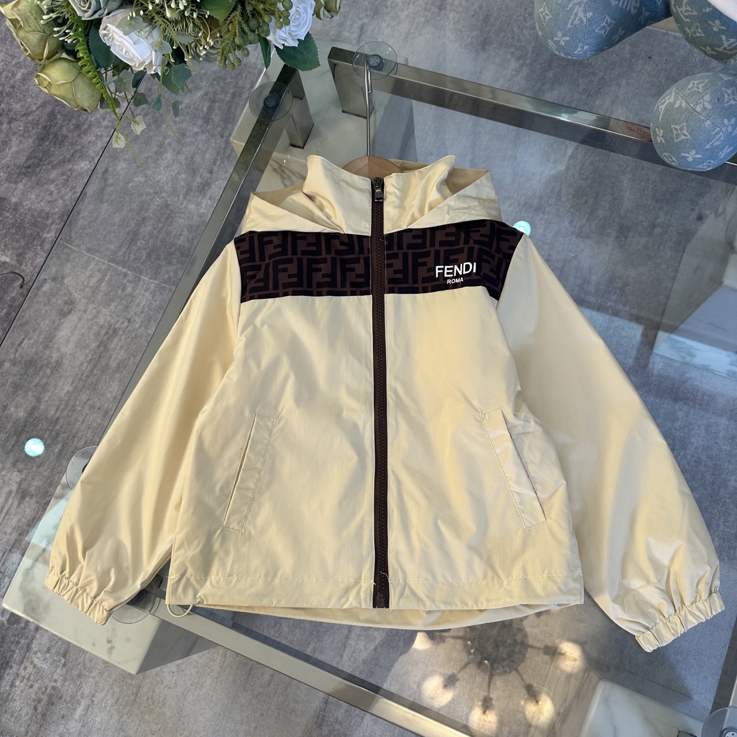 Details: Fendi high-end childrens windbreaker with multi-color letters and windproof fabric