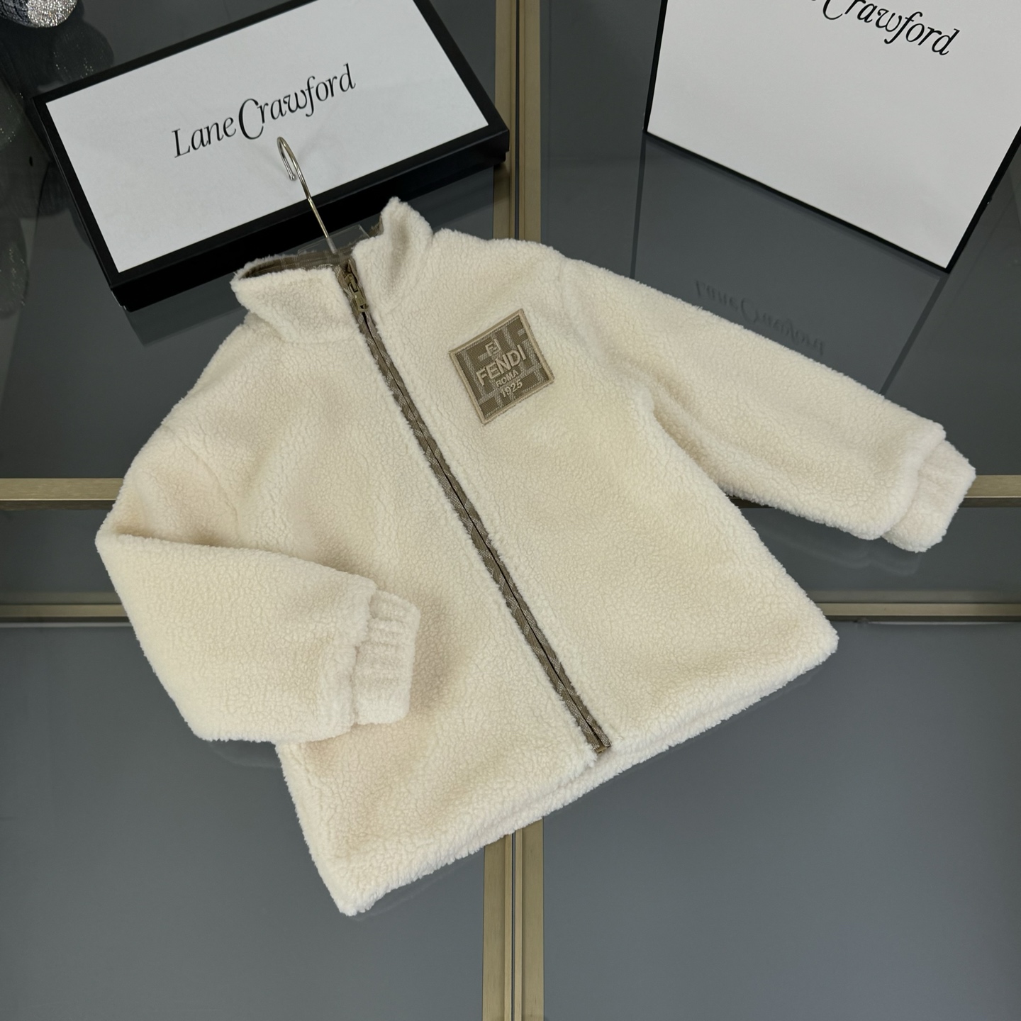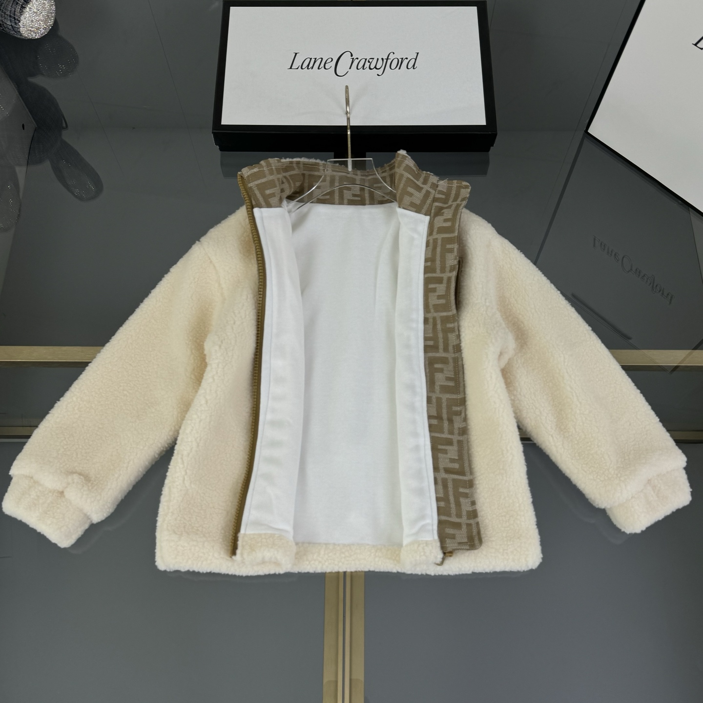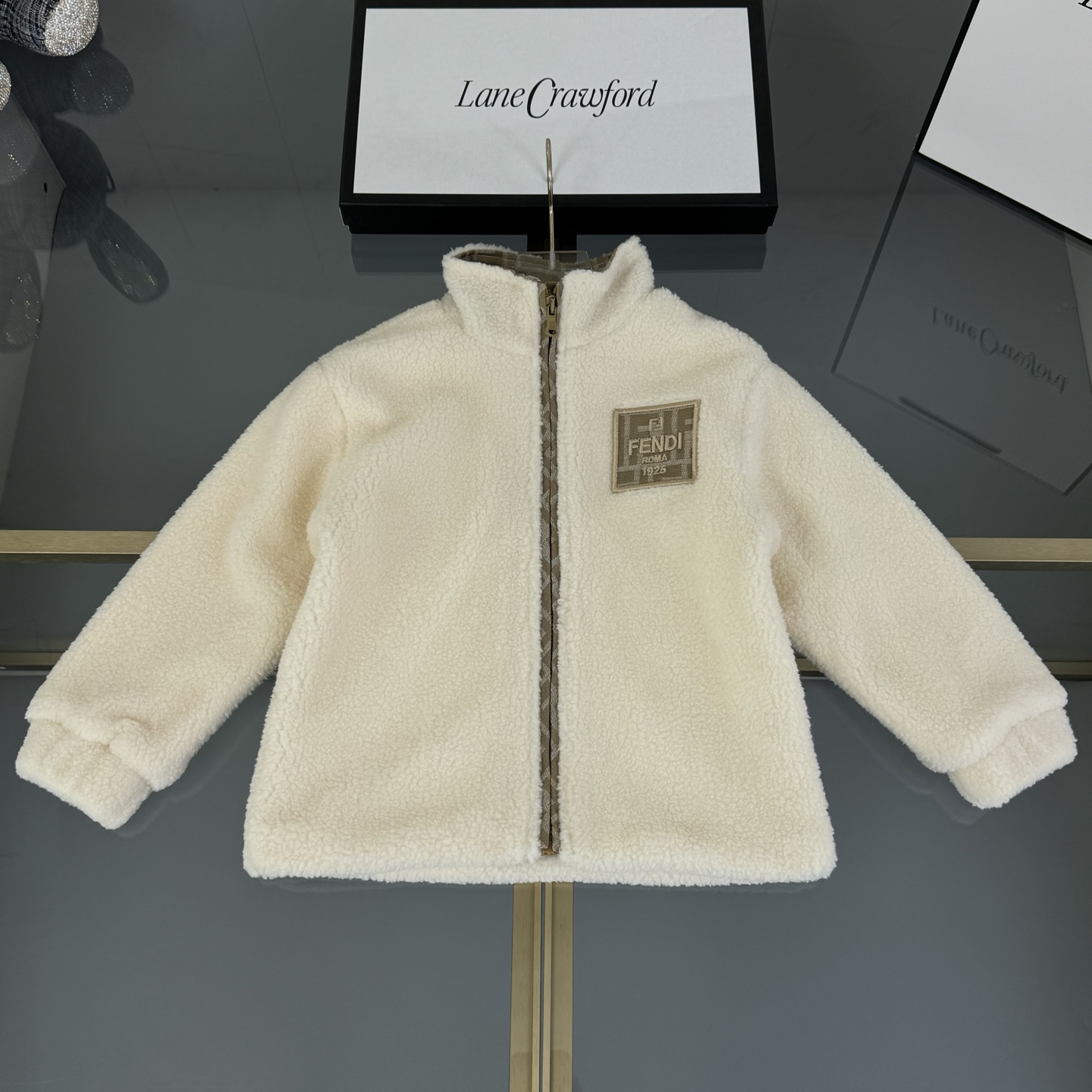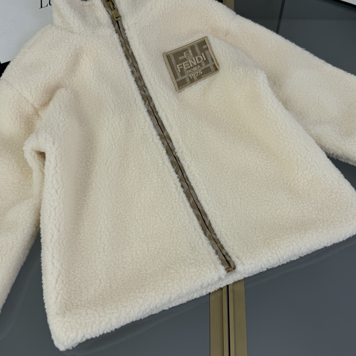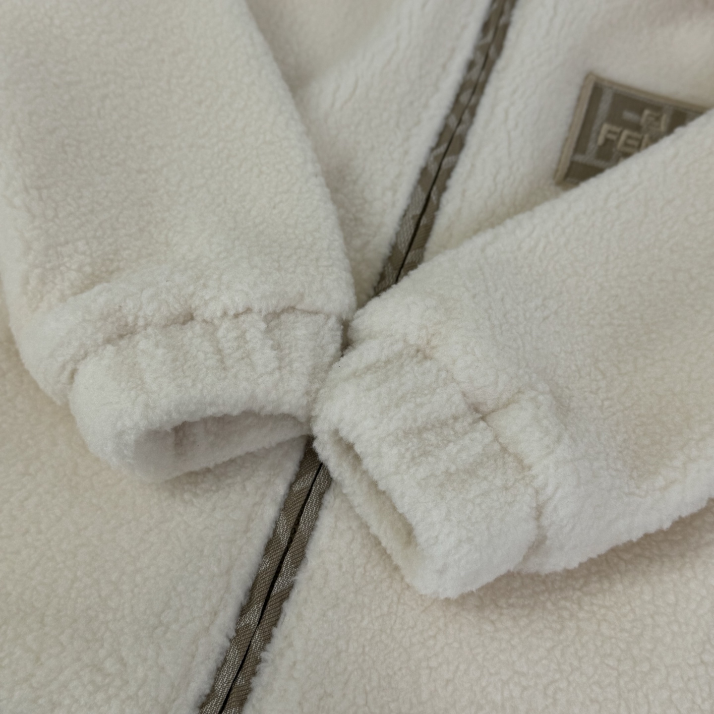 Details: Fendi Kids Fleece Jacket with 3D Embroidery, Beige, Comfortable & Stylish