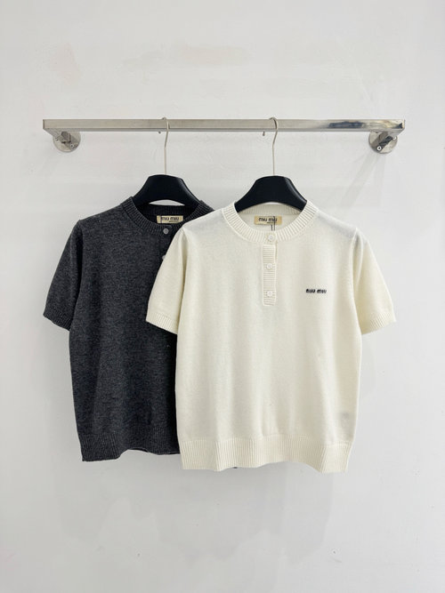 Miu Miu Soft Breathable Striped Knit Top with Logo Embroidery