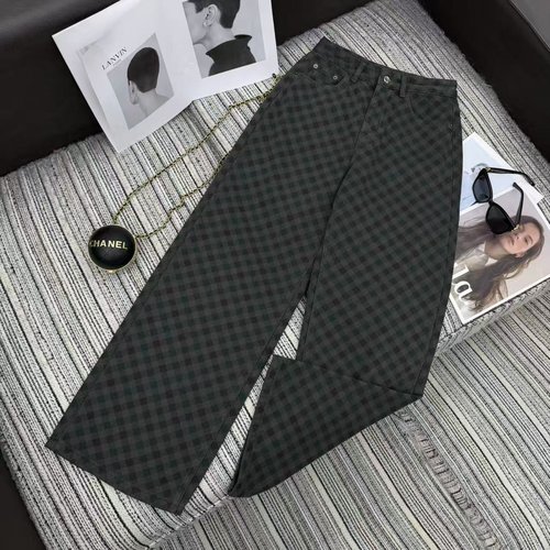 Details: Highly recommended early autumn colorful - checked straight - leg jeans with embroidered letter pockets, sizes SML. High - end customization, fine workmanship