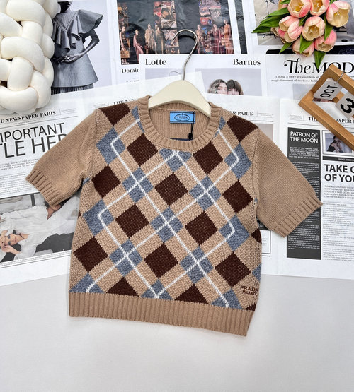 Details: herringbone knit short-sleeve top made of custom high-quality wool yarn, soft and comfortable, presenting a classic college style with youthful charm.