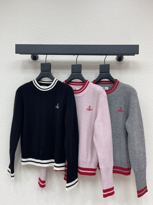 Details: Early spring s new Saturn round-neck knit top, crafted from wool, with a Saturn embroidery badge, contrasting cuffs, and a slim fit, offering a simple yet elegant style.