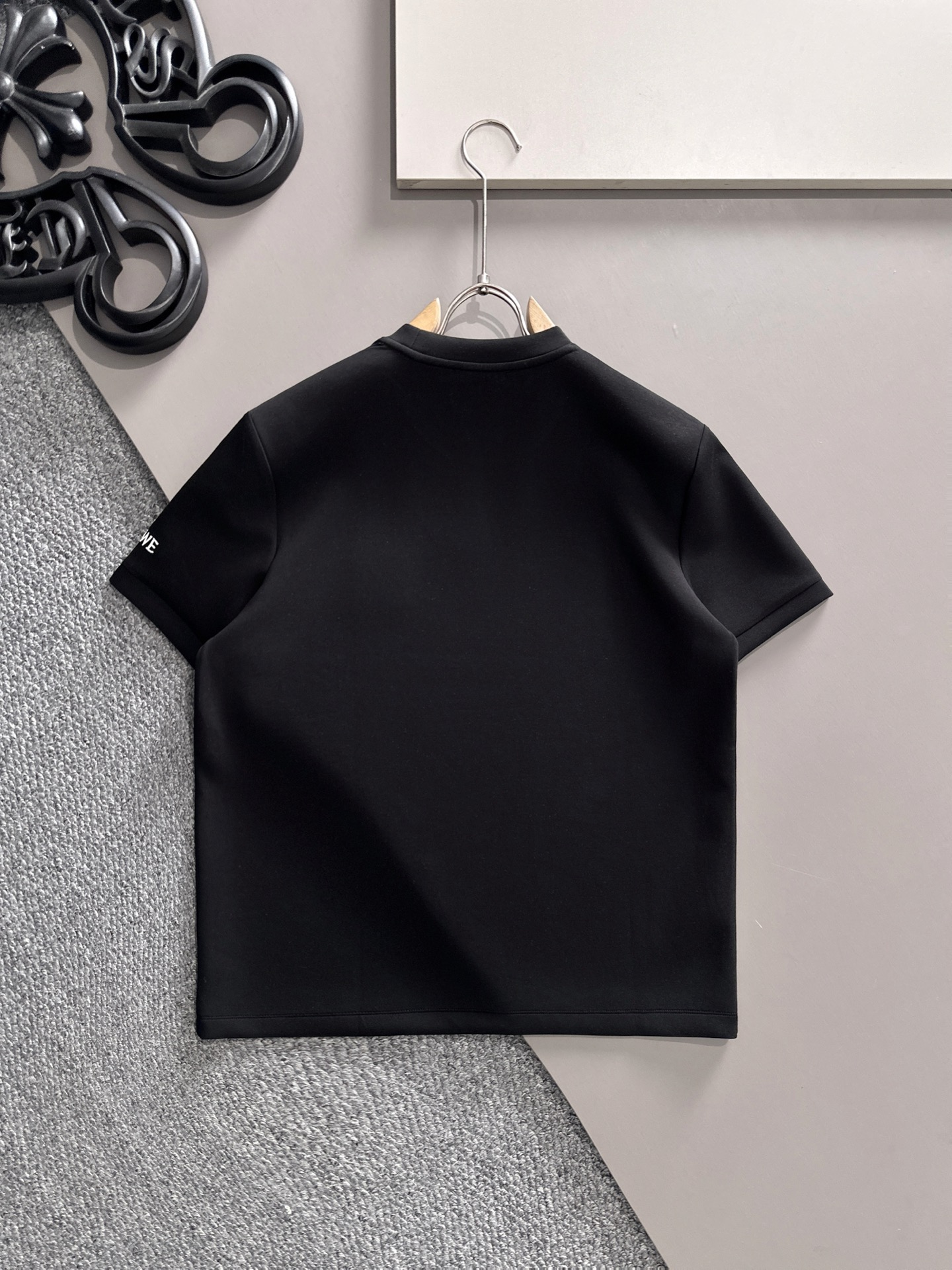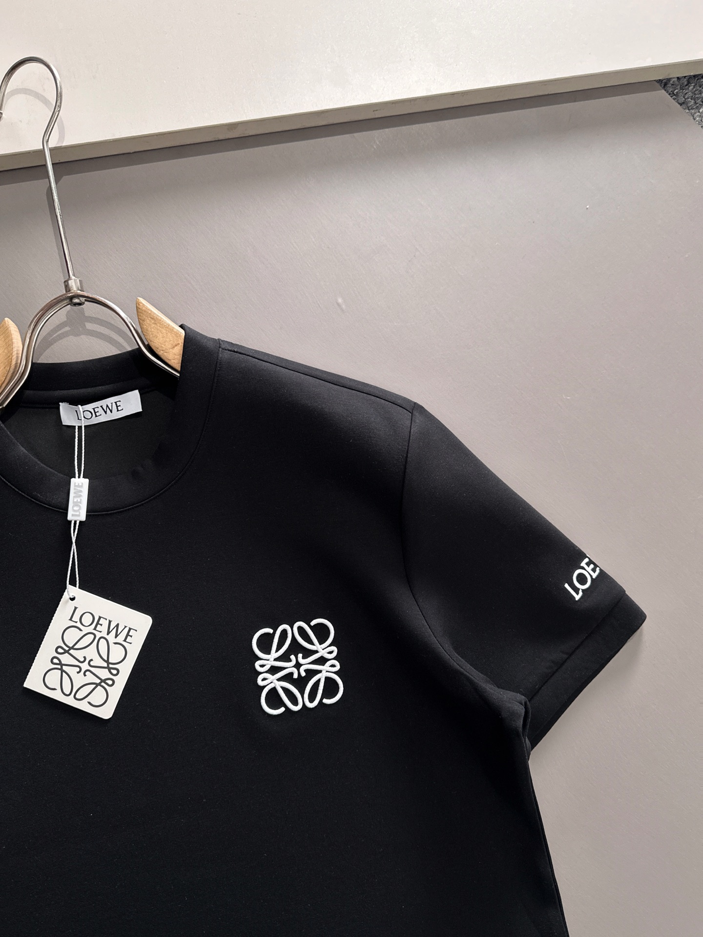 Details: Space cotton short-sleeved shirt with letter embroidery, comfortable and fashionable
