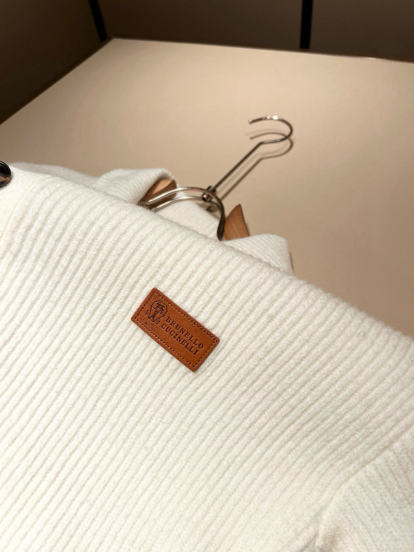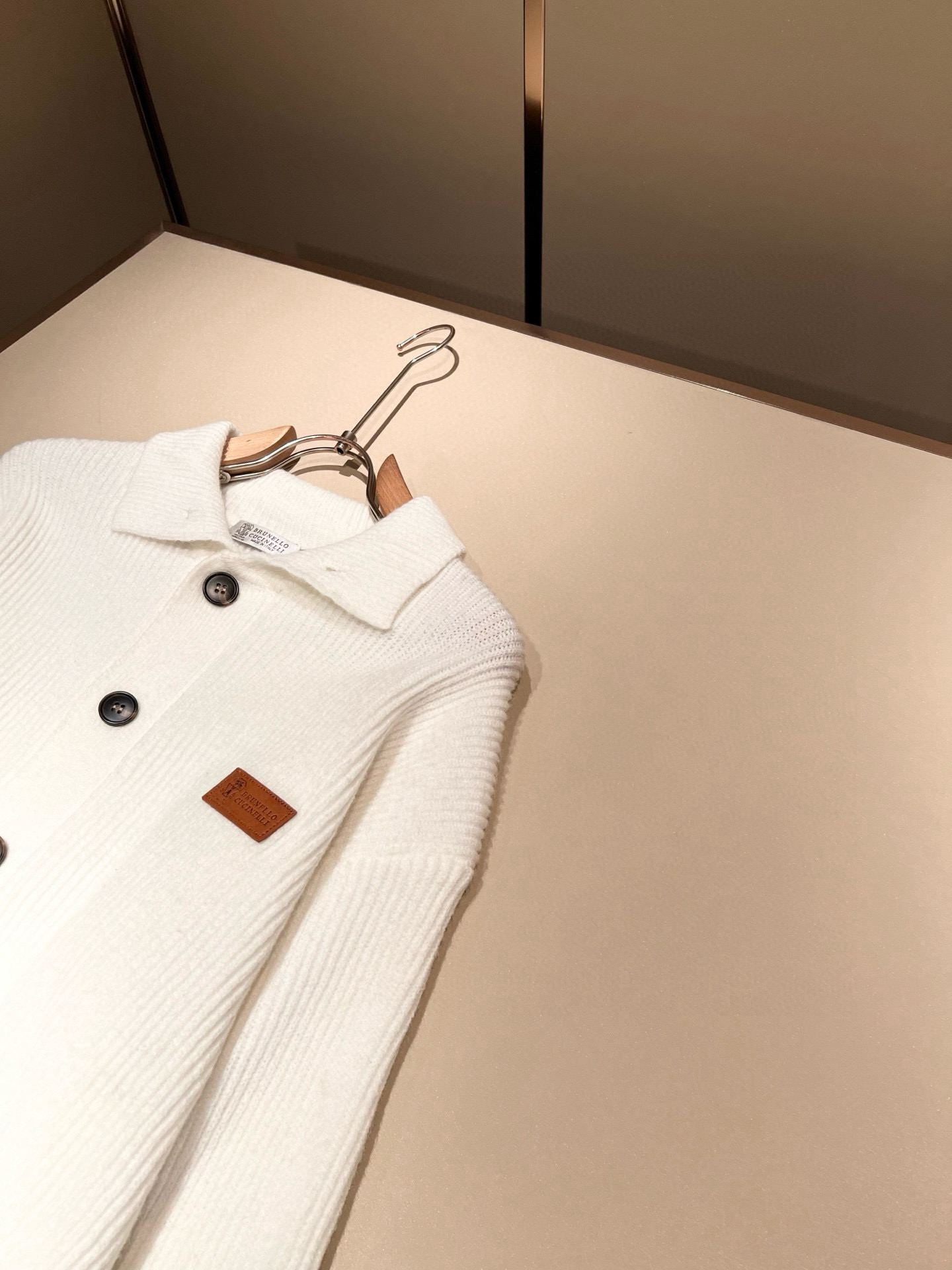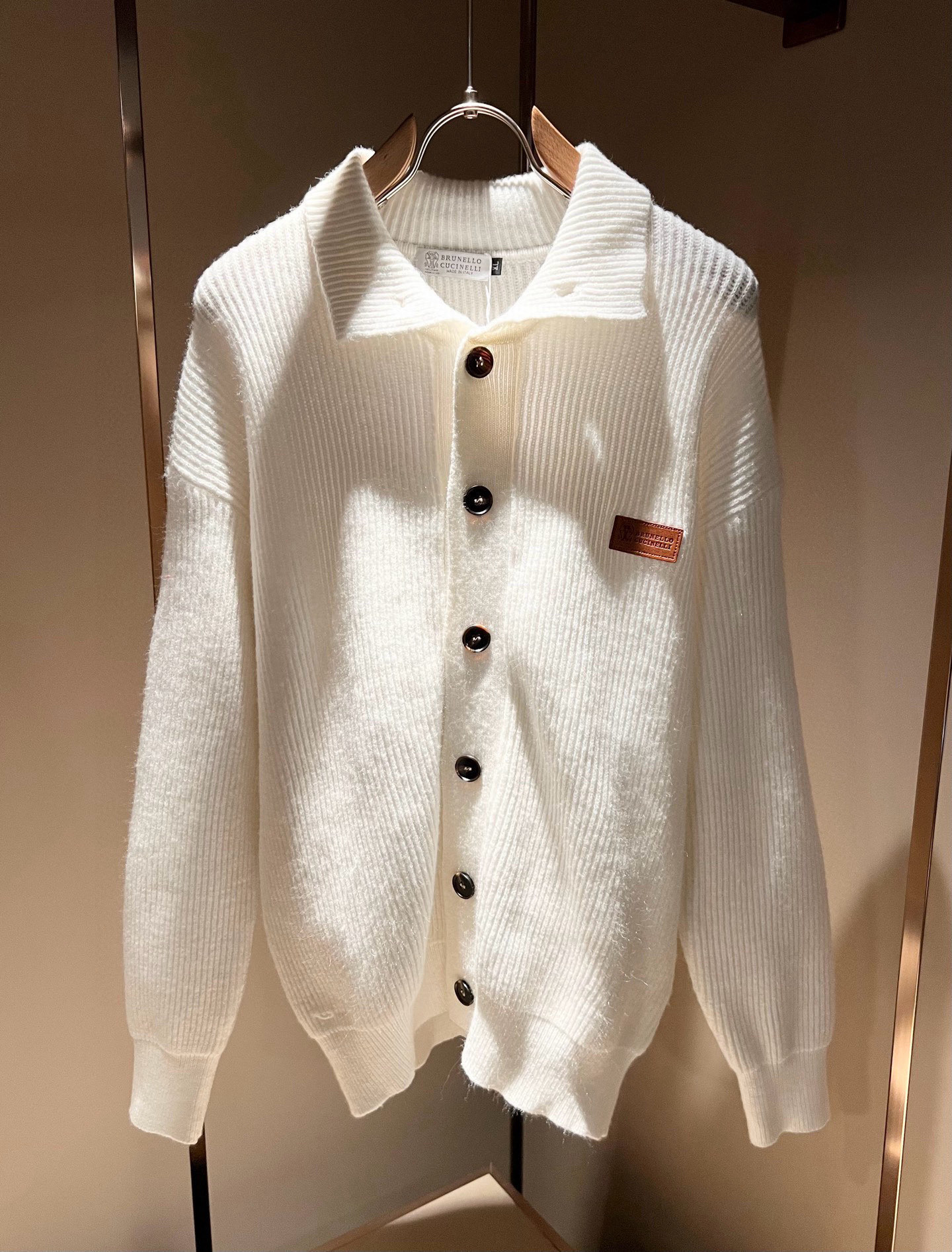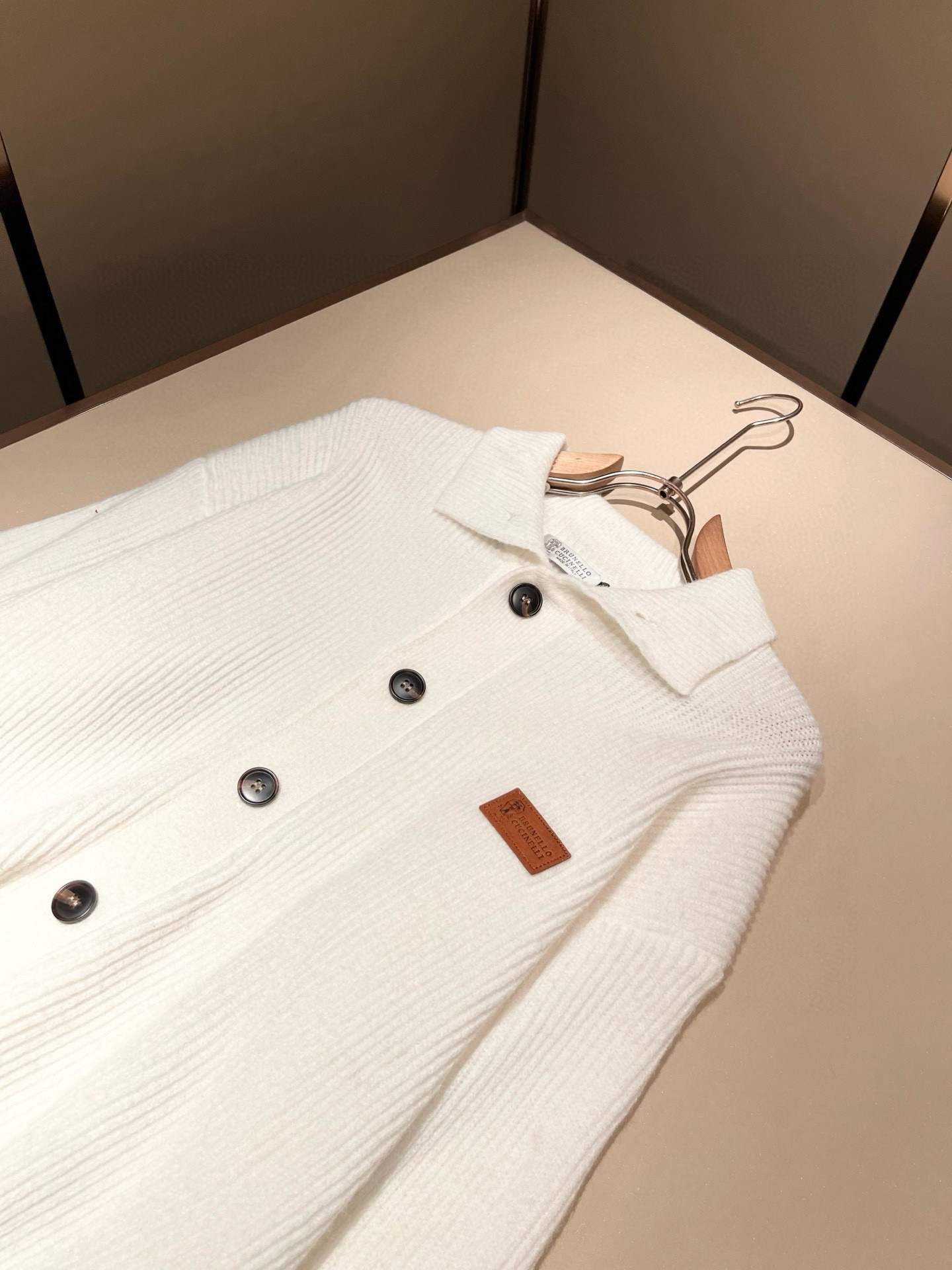 Details: Knitted wool cardigan with a leather logo, breathable, stylish, and suitable for both genders