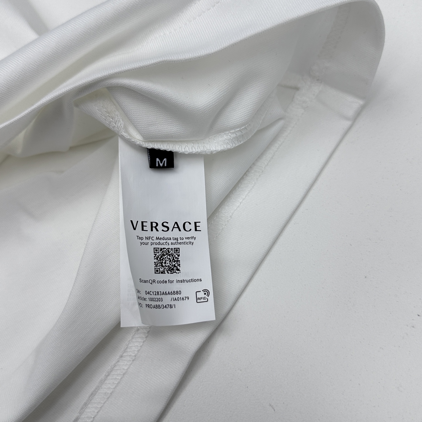 Details: Short - sleeve T - shirt with Medusa embroidery and diamond pasting, made of cotton fabric
