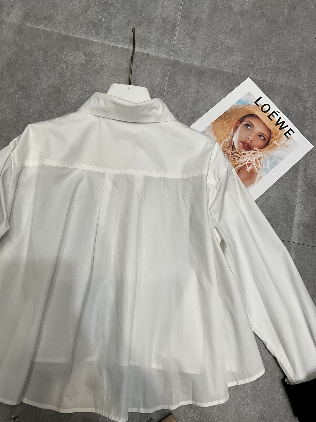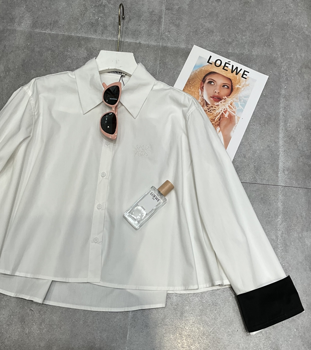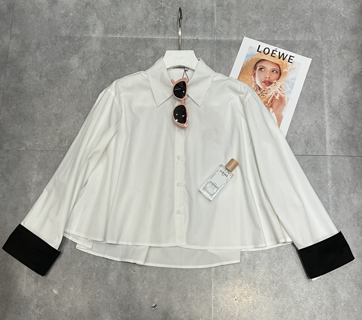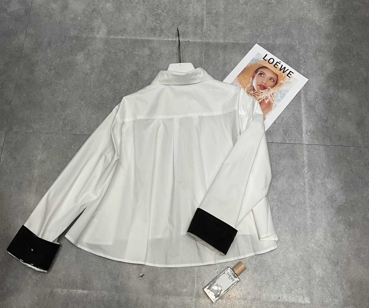 Details: Stylish collared shirt with contrast cuffs, embroidery, doll style, 2 colors, SML.