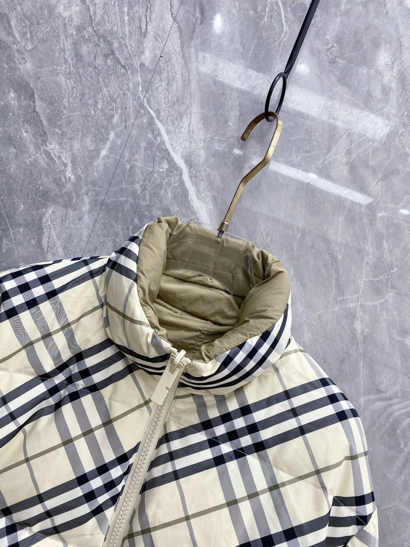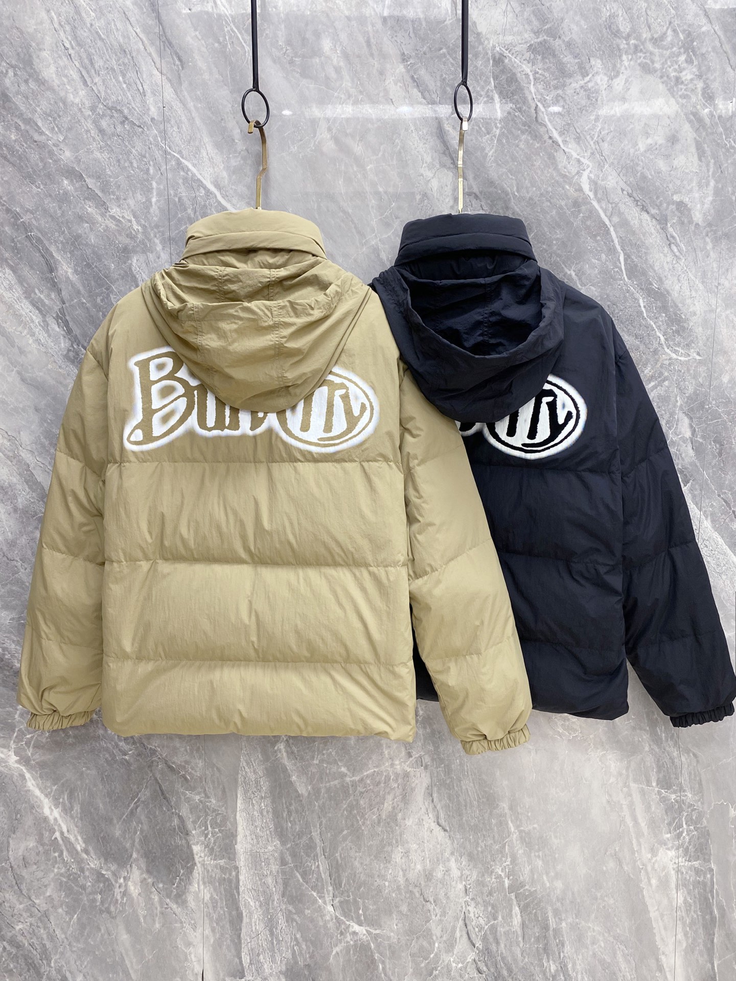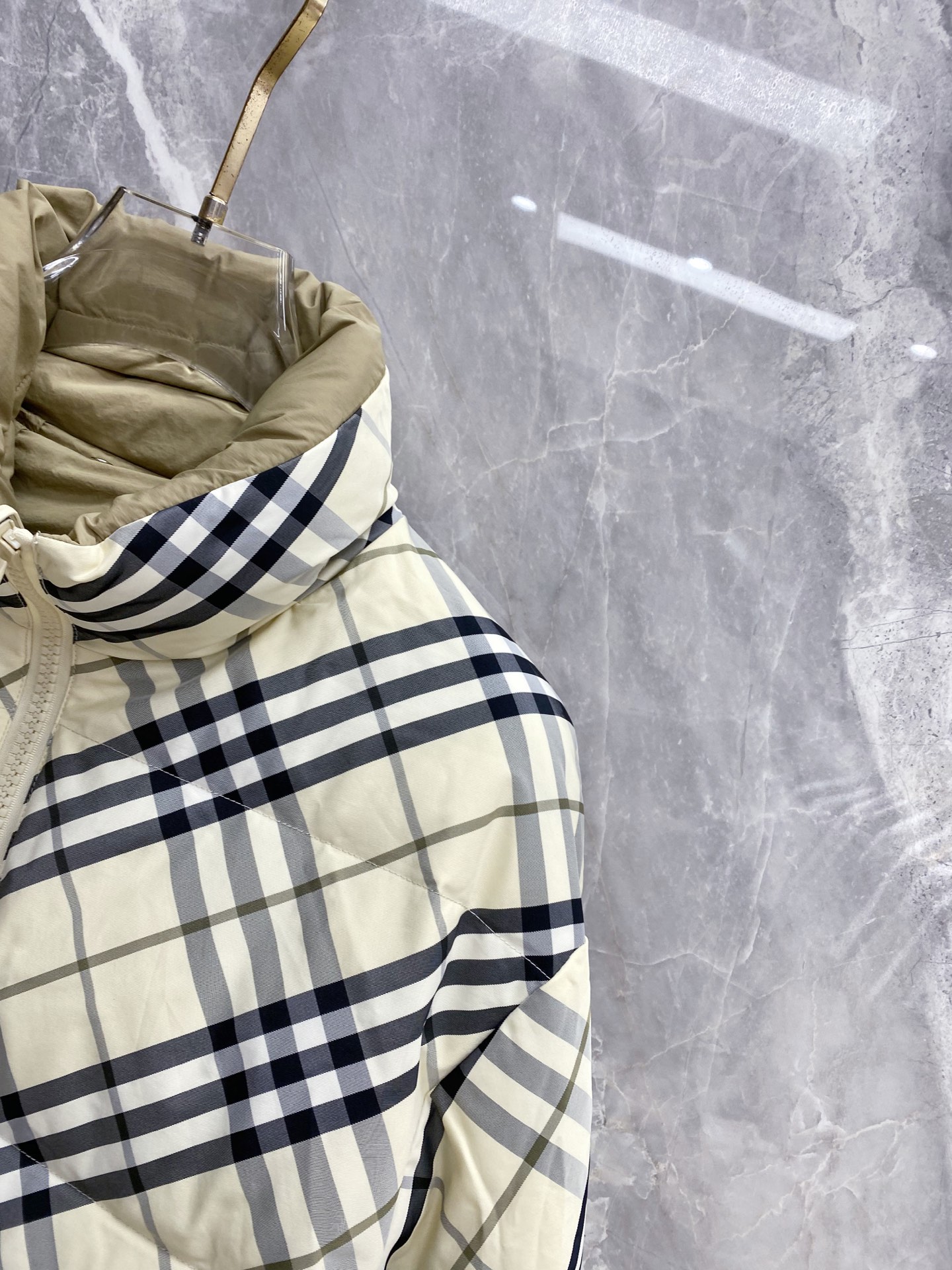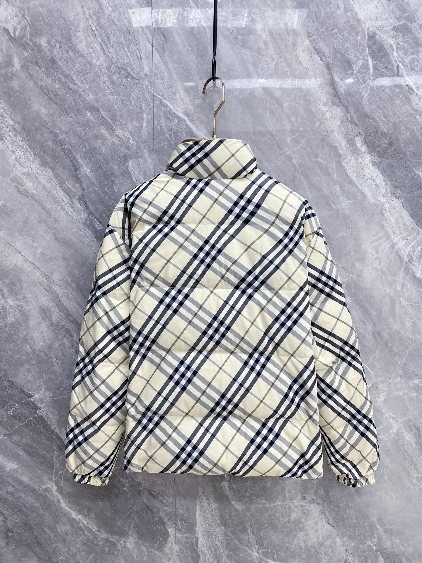 Details: Double-Faced Stand-Collar Down Jacket Made of Eco-Friendly Polyester Fabric, Wrinkle-Resistant, Windproof, and Warm. Comes with a Logo Badge on the Chest and High-Quality Hardware Accessories.