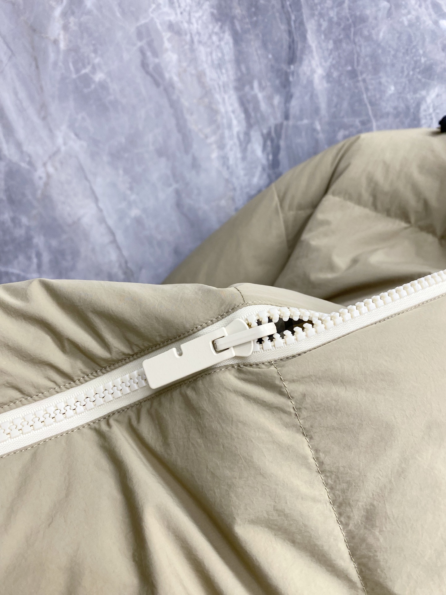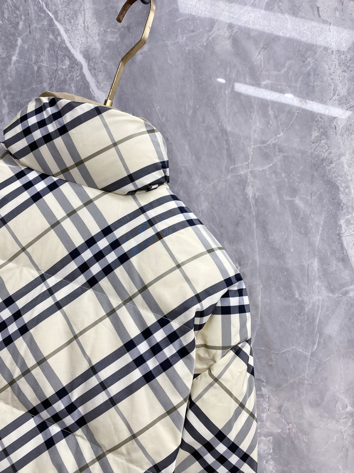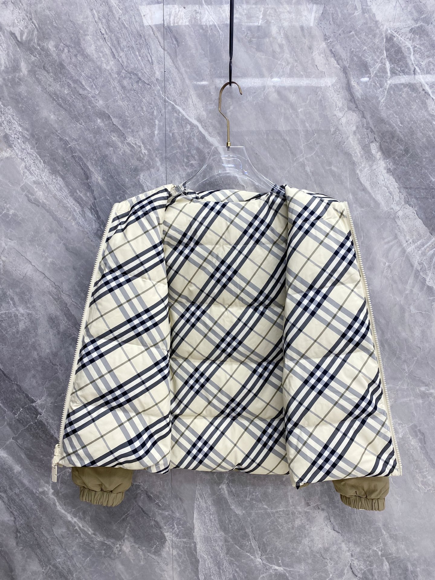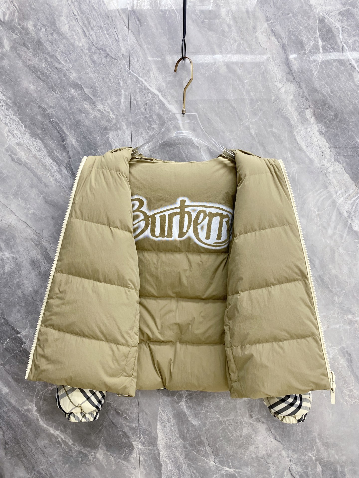 Details: Double-Faced Stand-Collar Down Jacket Made of Eco-Friendly Polyester Fabric, Wrinkle-Resistant, Windproof, and Warm. Comes with a Logo Badge on the Chest and High-Quality Hardware Accessories.